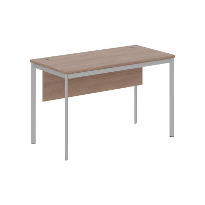 Универсальный рабочий стол IMAGO-S для офисного или домашнего использования, размер - 1200х600х755 мм, цвет – Ясень Шимо, цвет опор – Алюминий Матовый. Оснащен устойчивым и долговечным П-образным металлокаркасом типа «Бенч». Стол комплектуется декоративной фронтальной панелью (царгой). Солидная и прочная столешница 22 мм, надежная защита торцов всех элементов - кромка ПВХ 2 мм, регулировка по высоте для неровных полов.