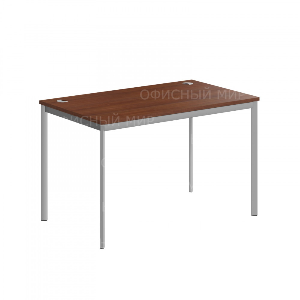 Универсальный рабочий стол IMAGO-S для офисного или домашнего использования, размер - 1200х720х755 мм, цвет – Орех Французский, цвет опор – Алюминий Матовый. Оснащен устойчивым и долговечным П-образным металлокаркасом типа «Бенч». Солидная и прочная столешница 22 мм, надежная защита торцов всех элементов - кромка ПВХ 2 мм, регулировка по высоте для неровных полов.