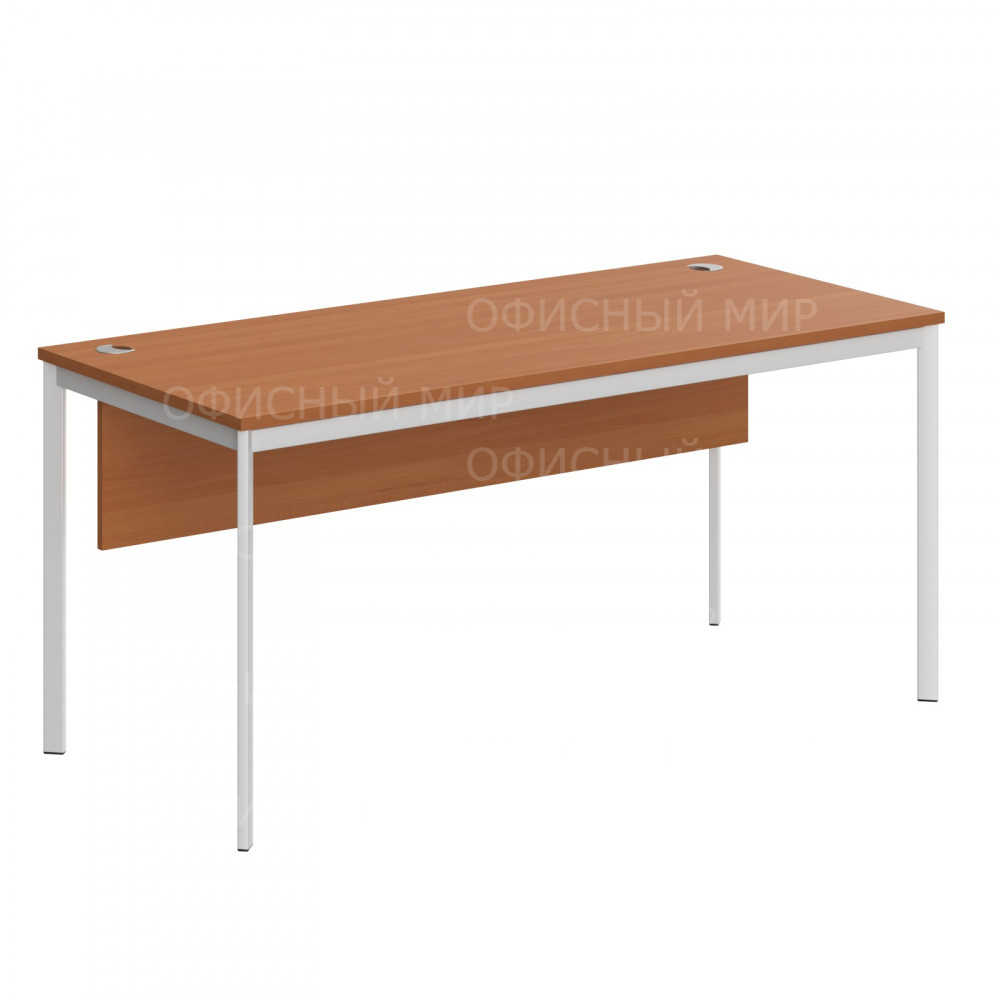 Большой рабочий стол IMAGO-S для офисного или домашнего использования, размер - 1600х720х755 мм, цвет – Груша Ароза, цвет опор – Белый. Оснащен устойчивым и долговечным П-образным металлокаркасом типа «Бенч». Стол комплектуется декоративной фронтальной панелью (царгой). Солидная и прочная столешница 22 мм, надежная защита торцов всех элементов - кромка ПВХ 2 мм, регулировка по высоте для неровных полов.