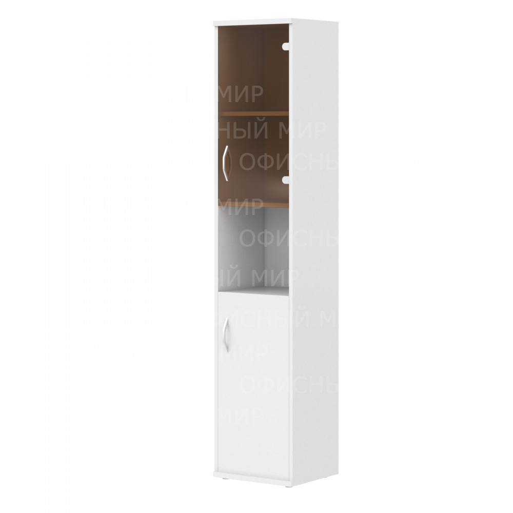 Шкаф колонка с малой глухой и стеклянной дверьми СУ-1.4(R) Белый 406*365*1975 IMAGO