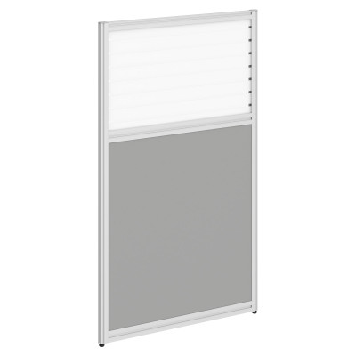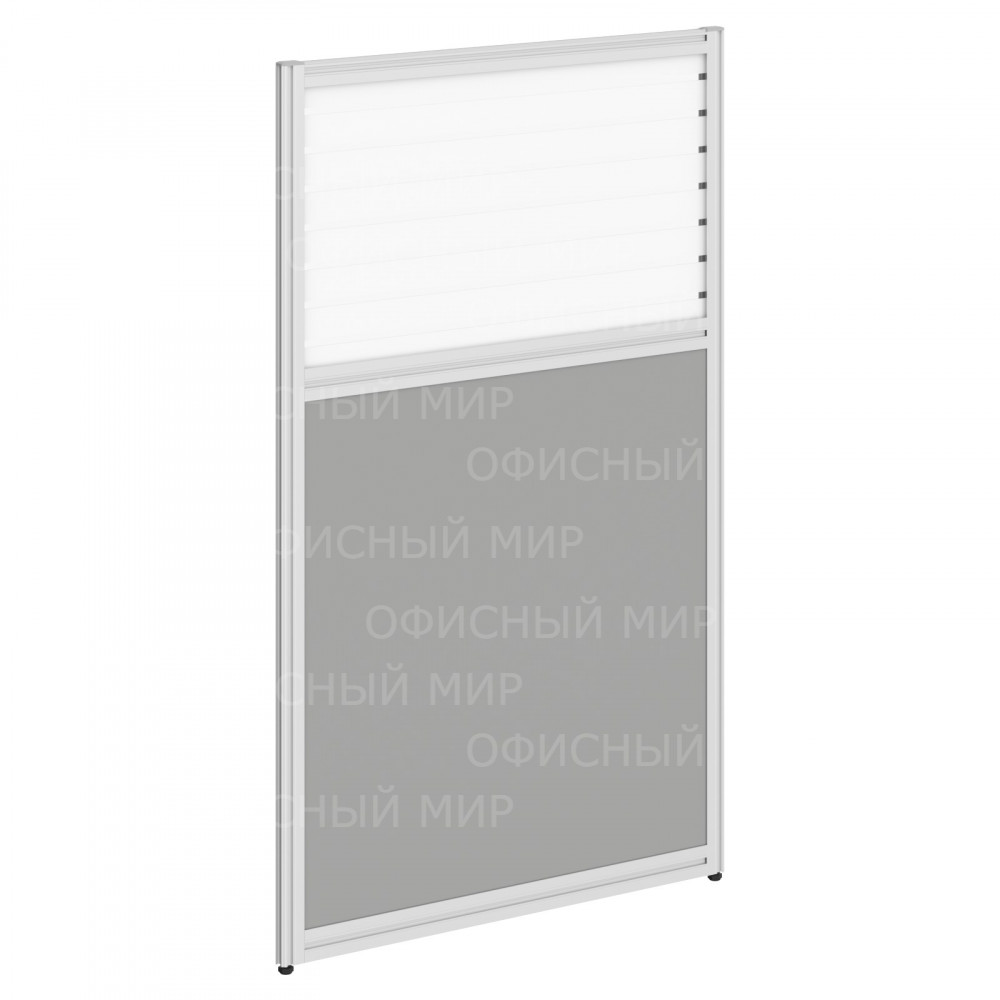 Перегородка из алюминиевого профиля с пазами. Низ заполнен ЛДСП т.16 мм или 18 мм. в зависимости от цвета ЛДСП. Верх - стекло т.4мм с матовыми полосками. Перегородка внизу имеет регулируемые опоры. Стекло поставляется в упаковке.