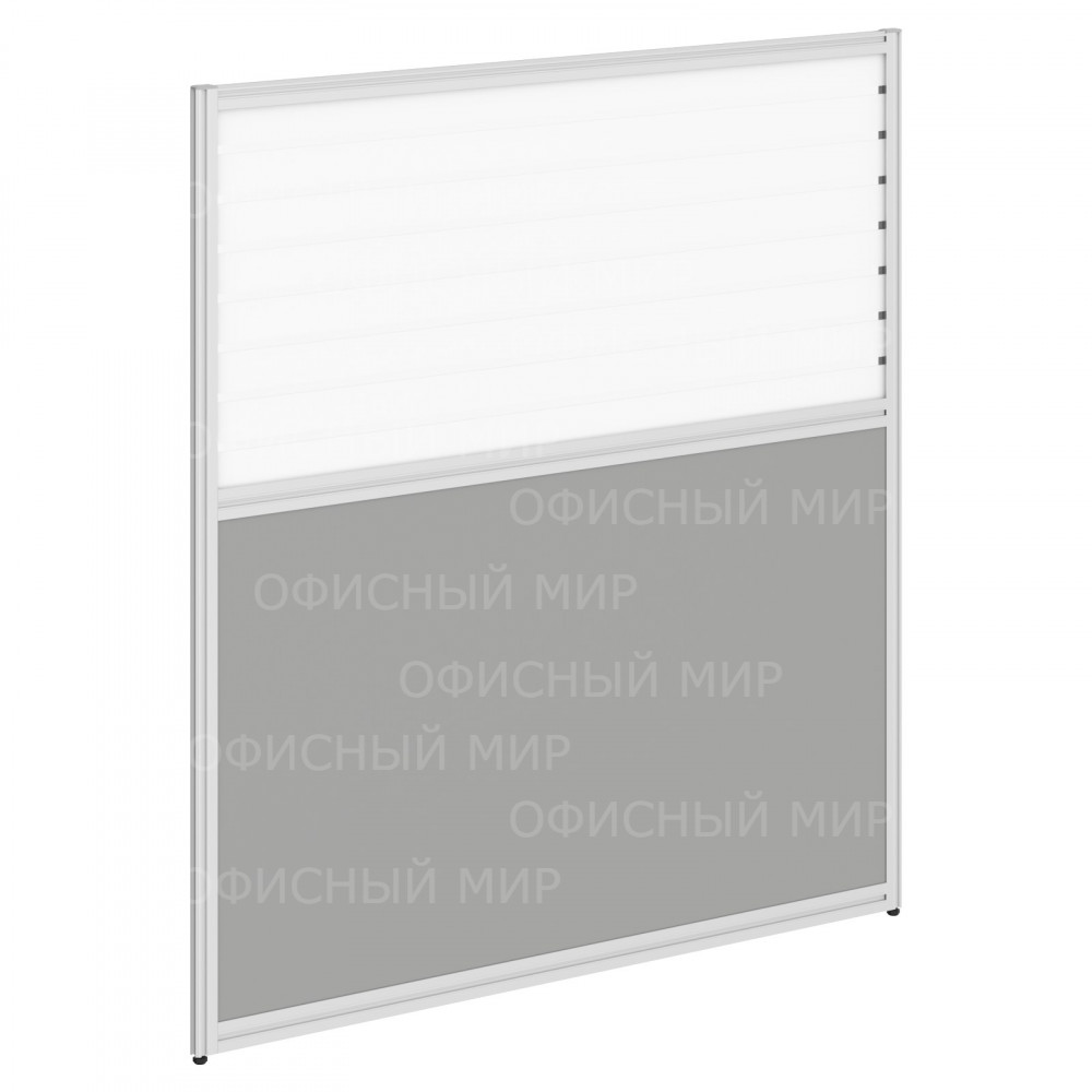 Перегородка из алюминиевого профиля с пазами. Низ заполнен ЛДСП т.16 мм или 18 мм. в зависимости от цвета ЛДСП. Верх - стекло т.4мм с матовыми полосками. Стекло поставляется в упаковке.