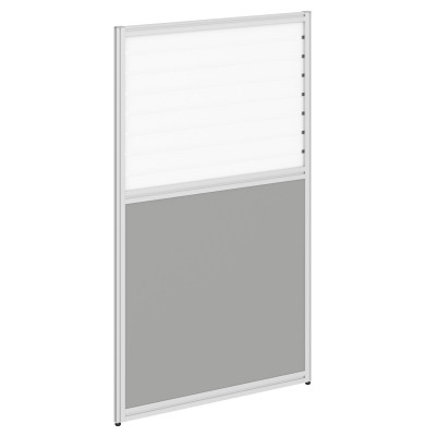 Перегородка из алюминиевого профиля с пазами. Низ заполнен ЛДСП т.16 мм или 18 мм. в зависимости от цвета ЛДСП. Верх - стекло т.4мм с матовыми полосками. Стекло поставляется в упаковке.