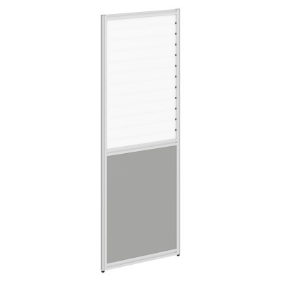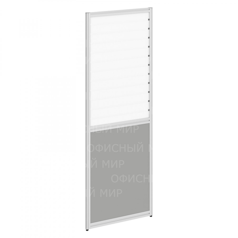 Перегородка из алюминиевого профиля с пазами. Низ заполнен ЛДСП т.16 мм или 18 мм. в зависимости от цвета ЛДСП. Верх - стекло т.4мм с матовыми полосками. Стекло поставляется в упаковке.