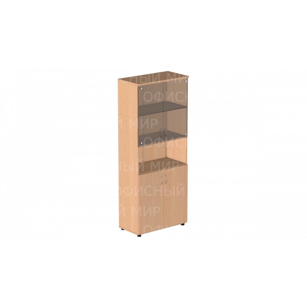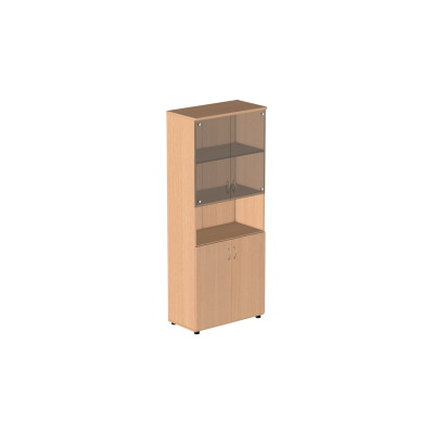 Шкаф высокий с нишей и тонированным стеклом Р.Ш-4СТ серии Референт из ЛДСП толщиной 22 мм, выполненный в классическом стиле, имеет 5 отсеков для хранения документов, два нижних отсека закрываются глухими дверцами, две верхние полки - дверцами из прозрачного стекла, и открытую нишу между ними. Возможные цвета отделки: бук, венге/дуб, вишня, дуб кронберг, орех.