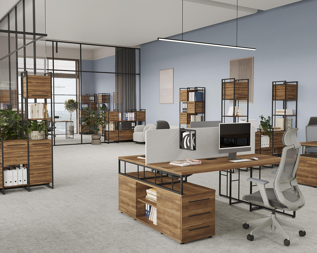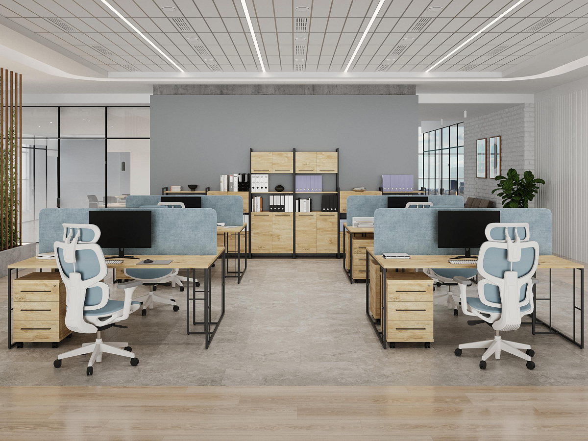 ✨Единая стилистика для кабинета руководителя и рабочих зон создаёт гармоничную и профессиональную атмосферу в офисе.