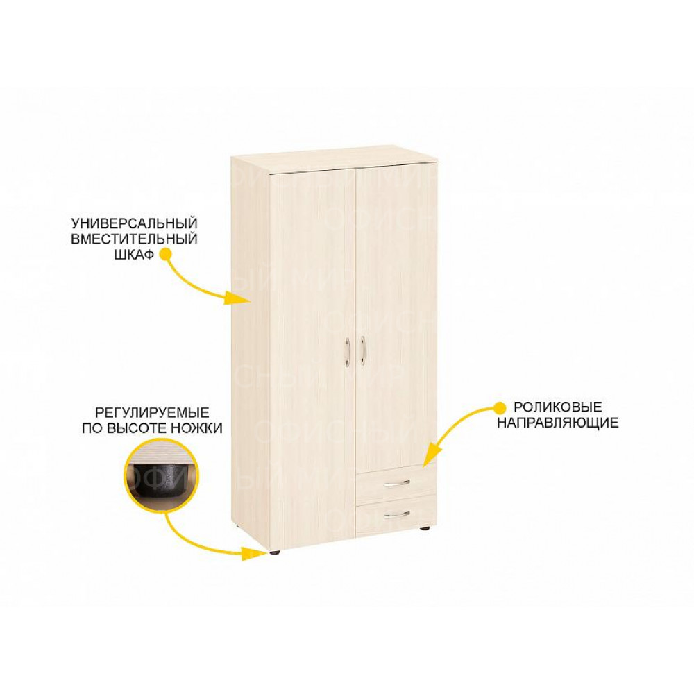 Многофункциональный шкаф «Рубин 40.105» является частью коллекции «Рубин 40». Шкаф выполнен из ЛДСП повышенной прочности в актуальном цвете Сосна «Астрид». Продуманный функционал позволяет использовать шкаф и в детской комнате, и в прихожей, и в рабочем кабинете дома или офиса. В левой части шкафа установлена штанга для хранения одежды на плечиках, в правой части расположены полки и два выдвижных ящика. Шкаф удачно сочетается с модулями из других коллекций «DaVita-мебель» в цвете Сосна «Астрид».
