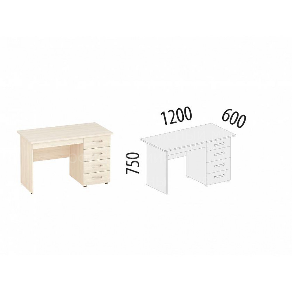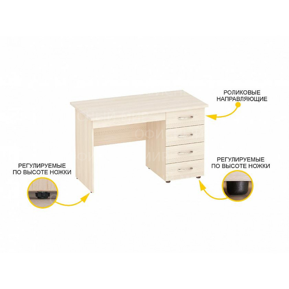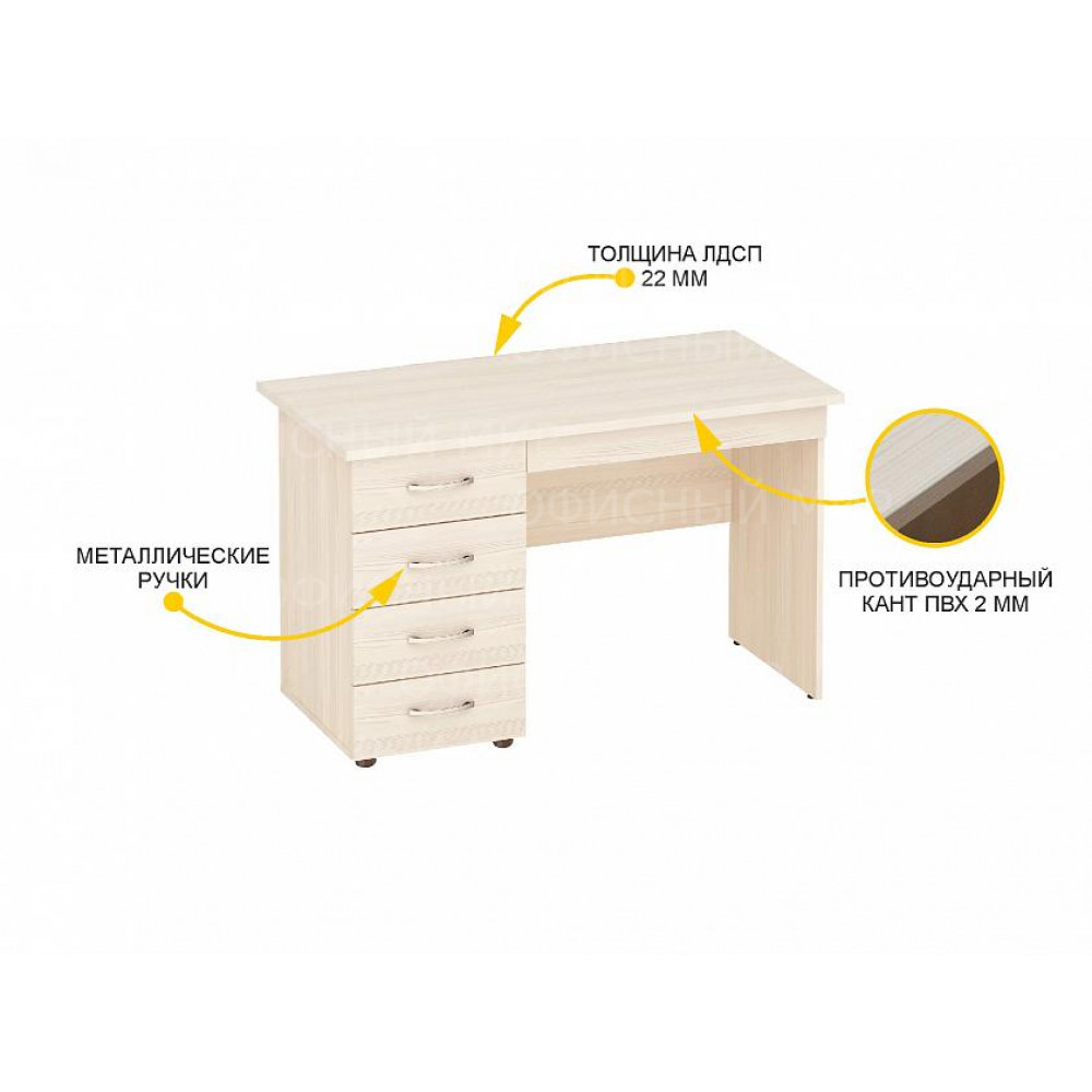 –Стол произведен из ЛДСП повышенной плотности, материал устойчив к механическим и термическим воздействиям. Класс эмиссии плиты Е1, что говорит об экологической безопасности.