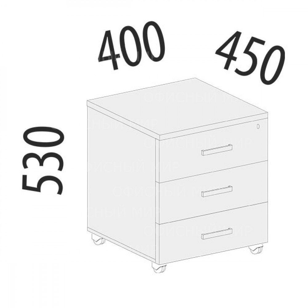 Тумба с тремя ящиками «Рубин 42.61» является частью модульного набора мебели для офиса «Рубин». Верхний ящик имеет встроенный замок. В комплекте к замку тумбы прилагаются два ключа. Колесные опоры позволяют легко перемещать изделие.