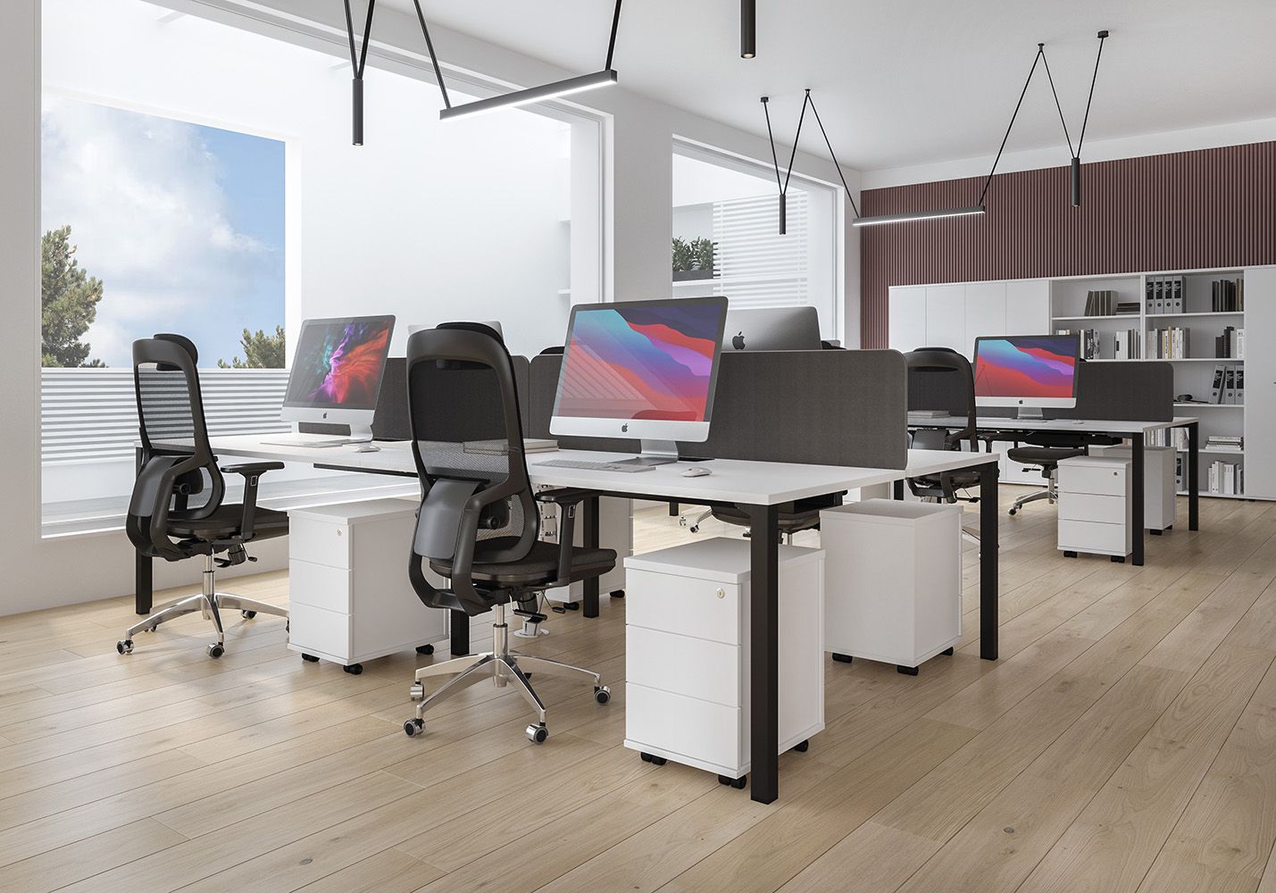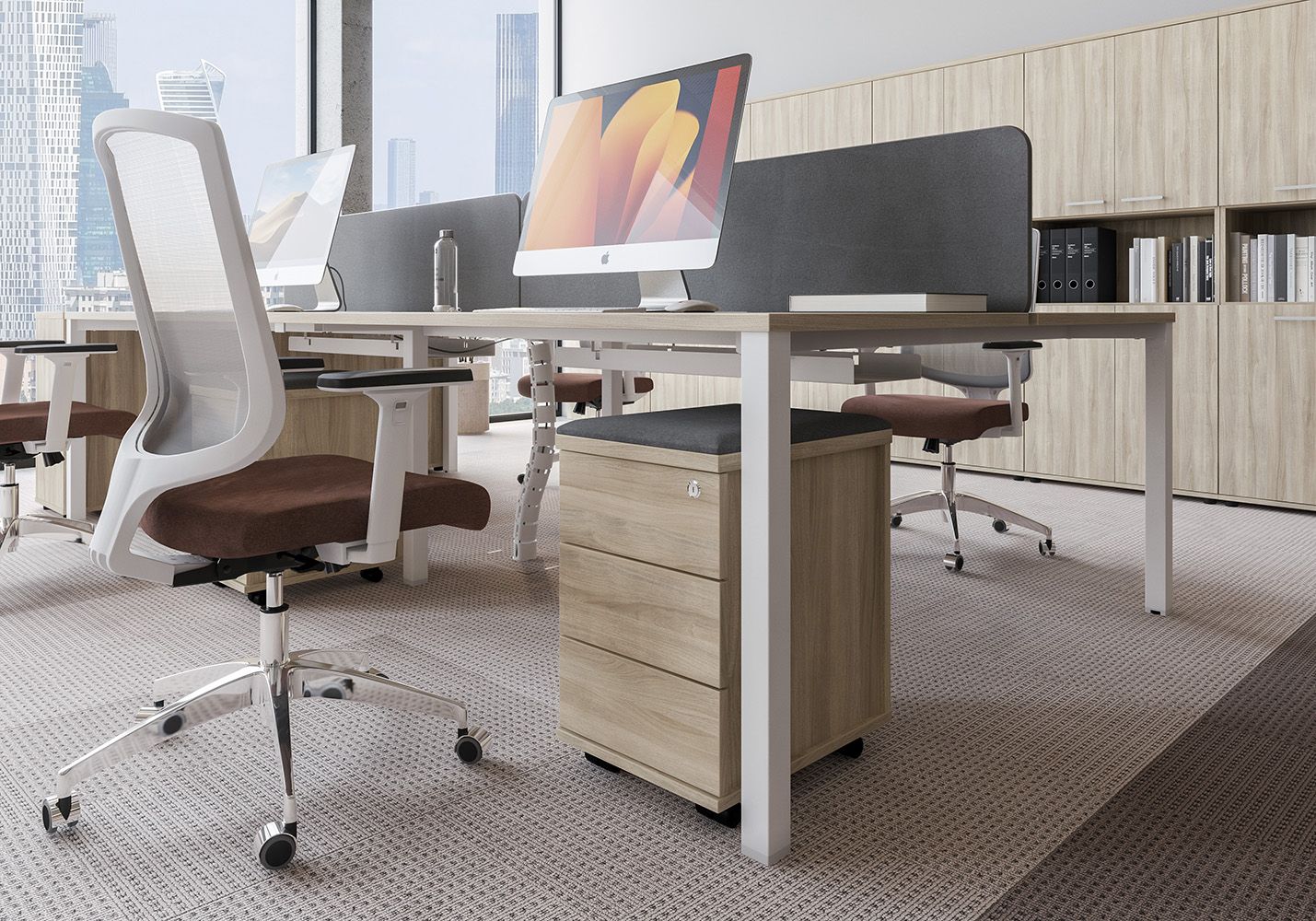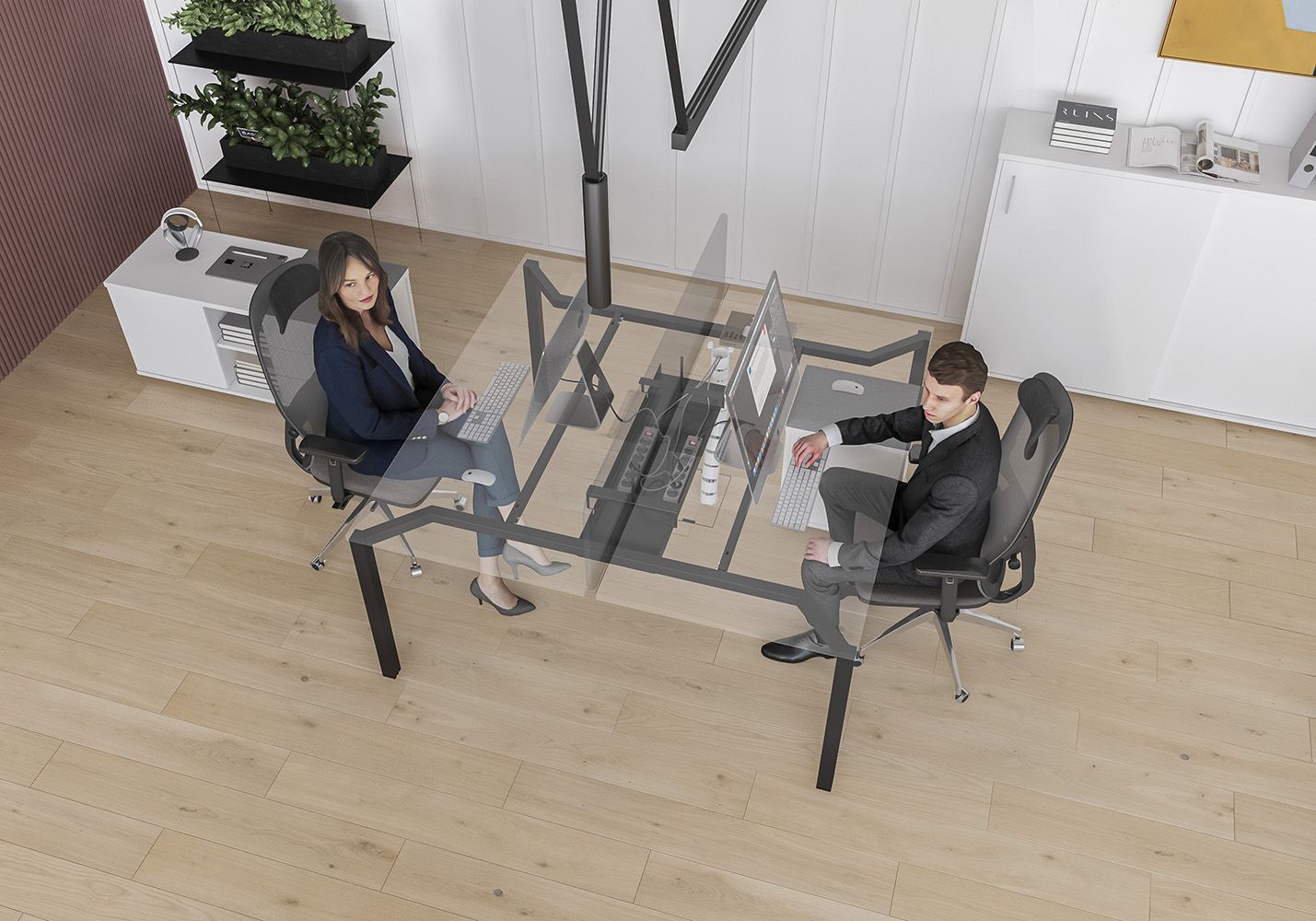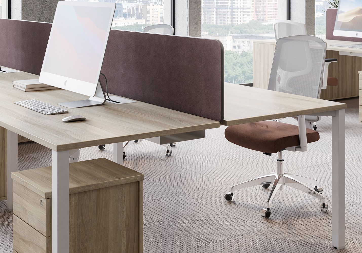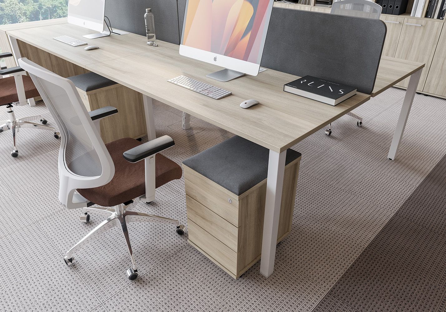 • Каждое рабочее место оснащено всего лишь одной траверсой для обеспечения большего пространства под столешницей.