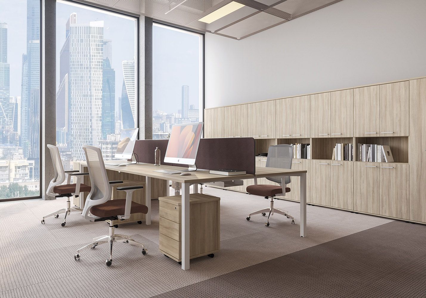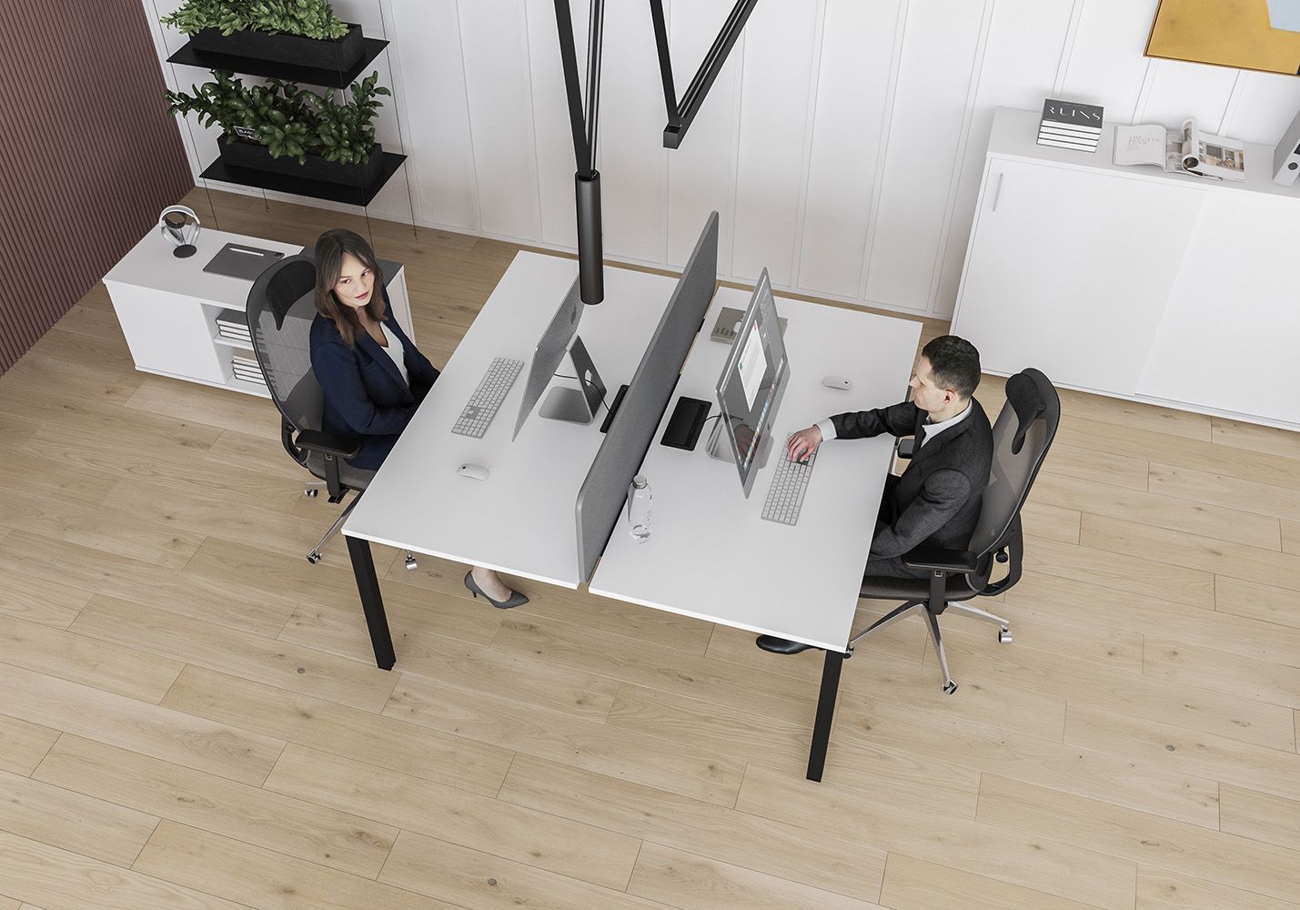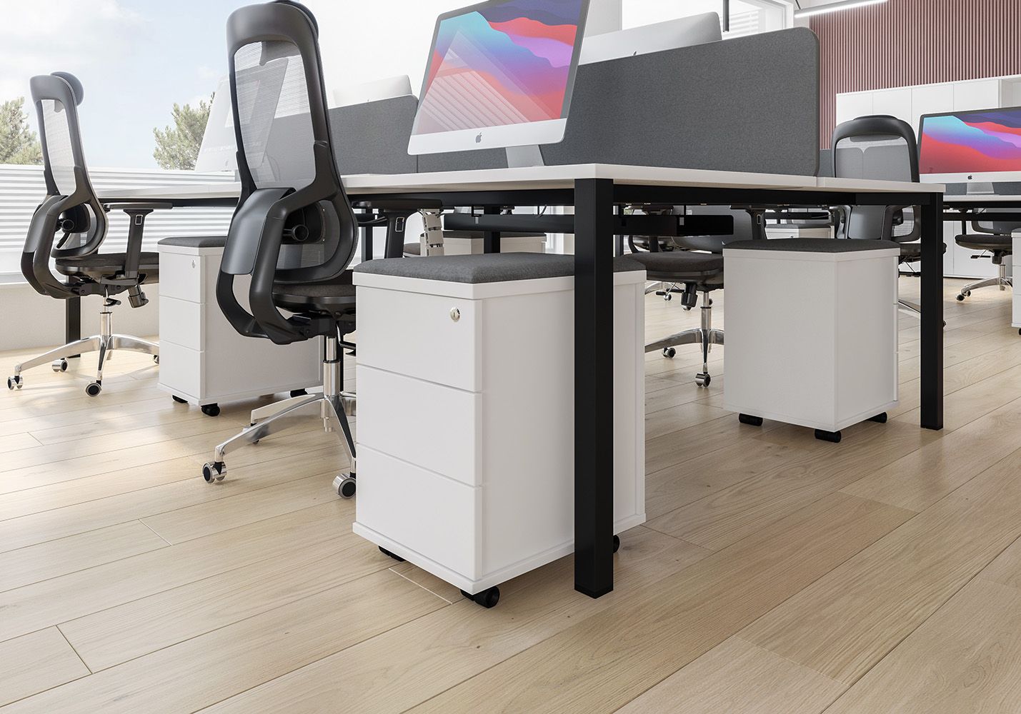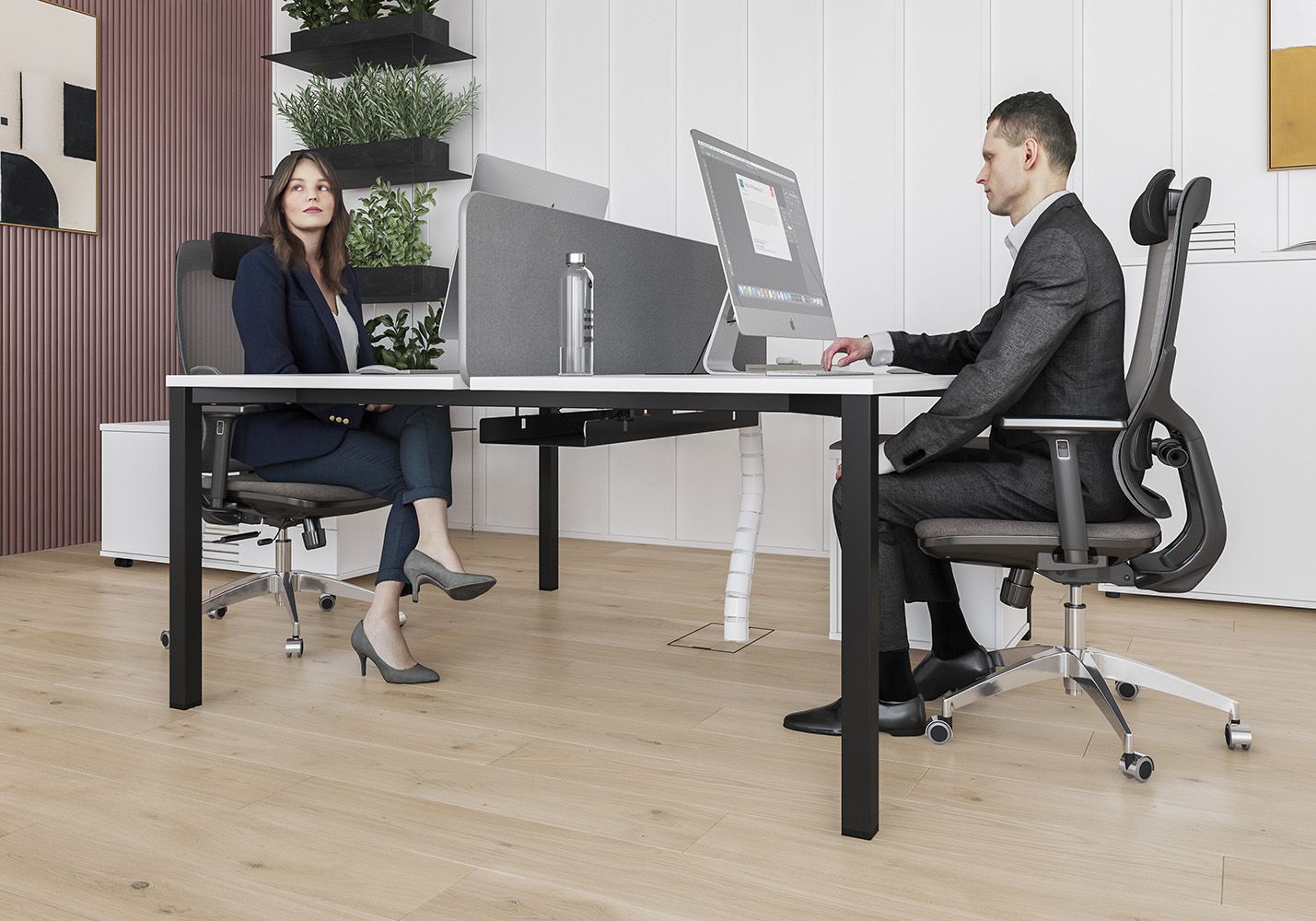 • Каждое рабочее место оснащено всего лишь одной траверсой для обеспечения большего пространства под столешницей.