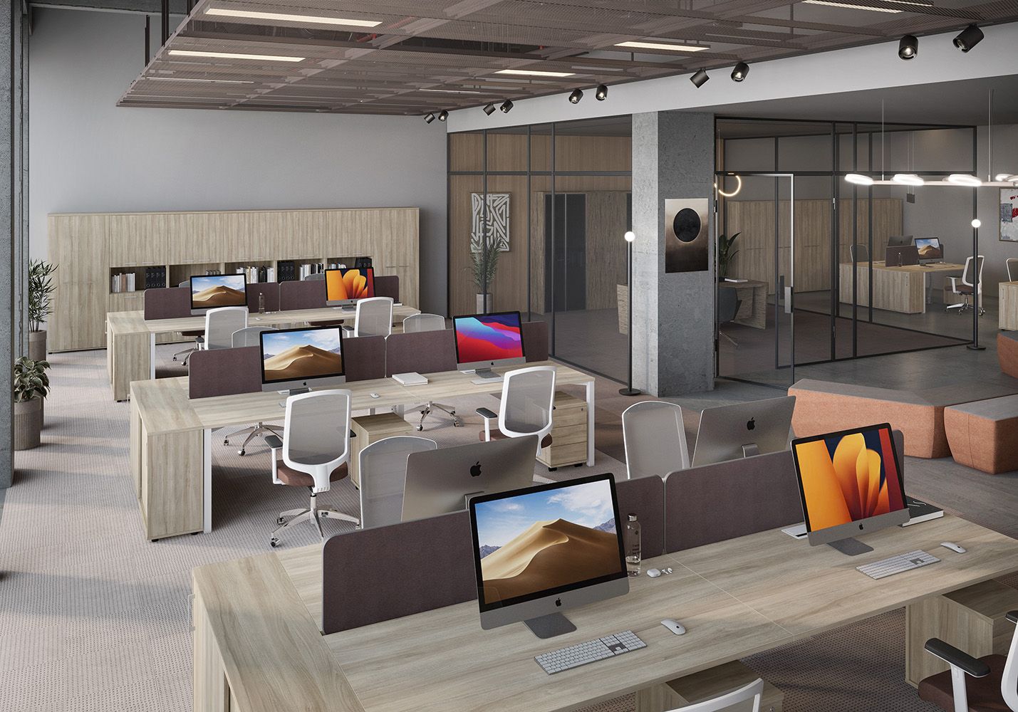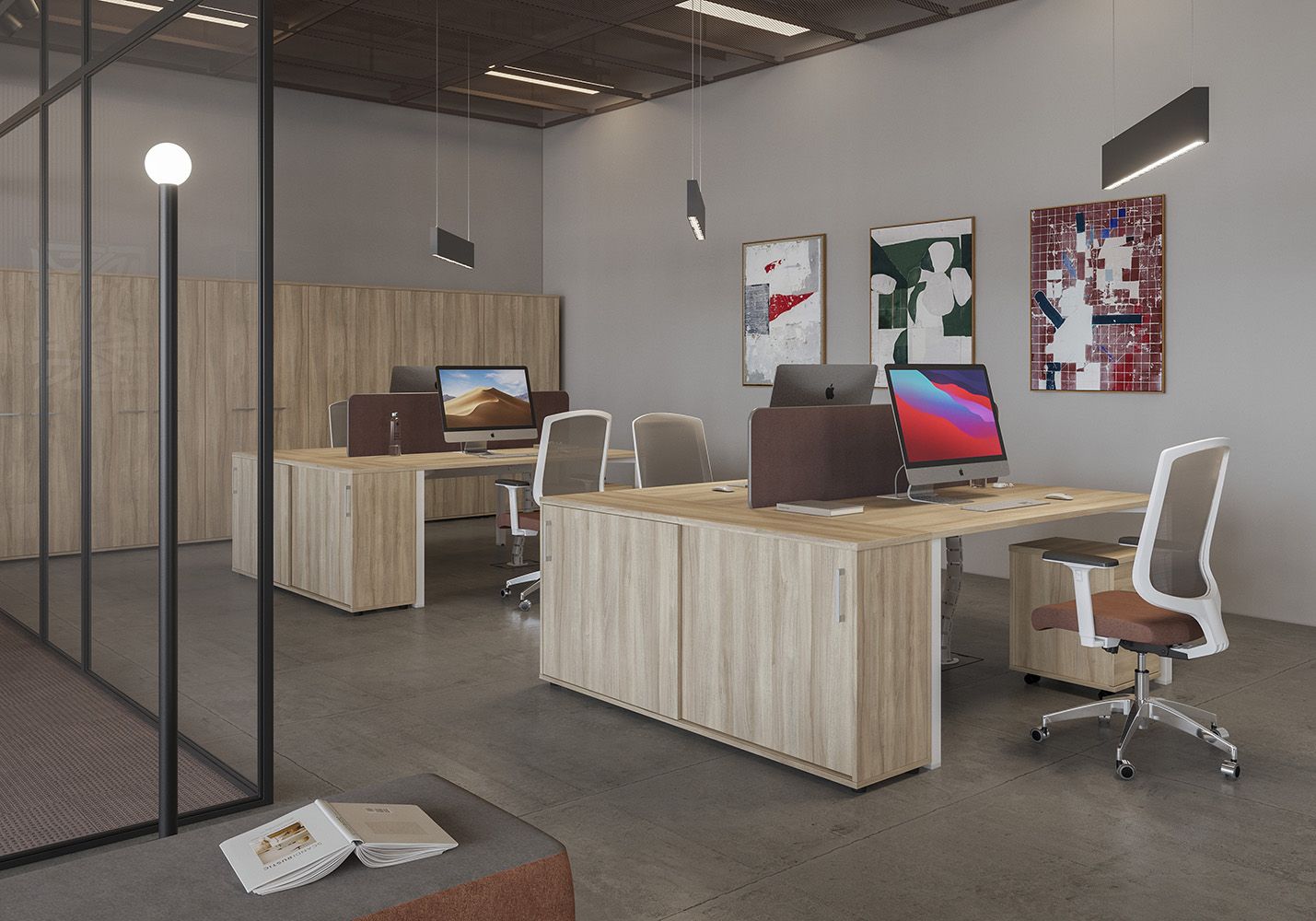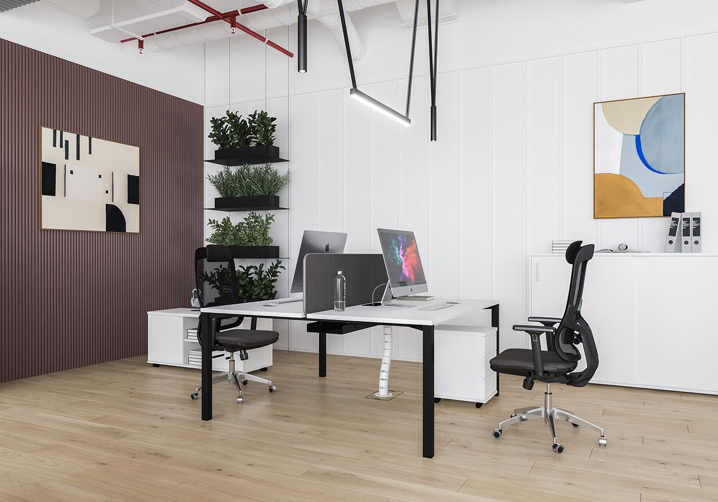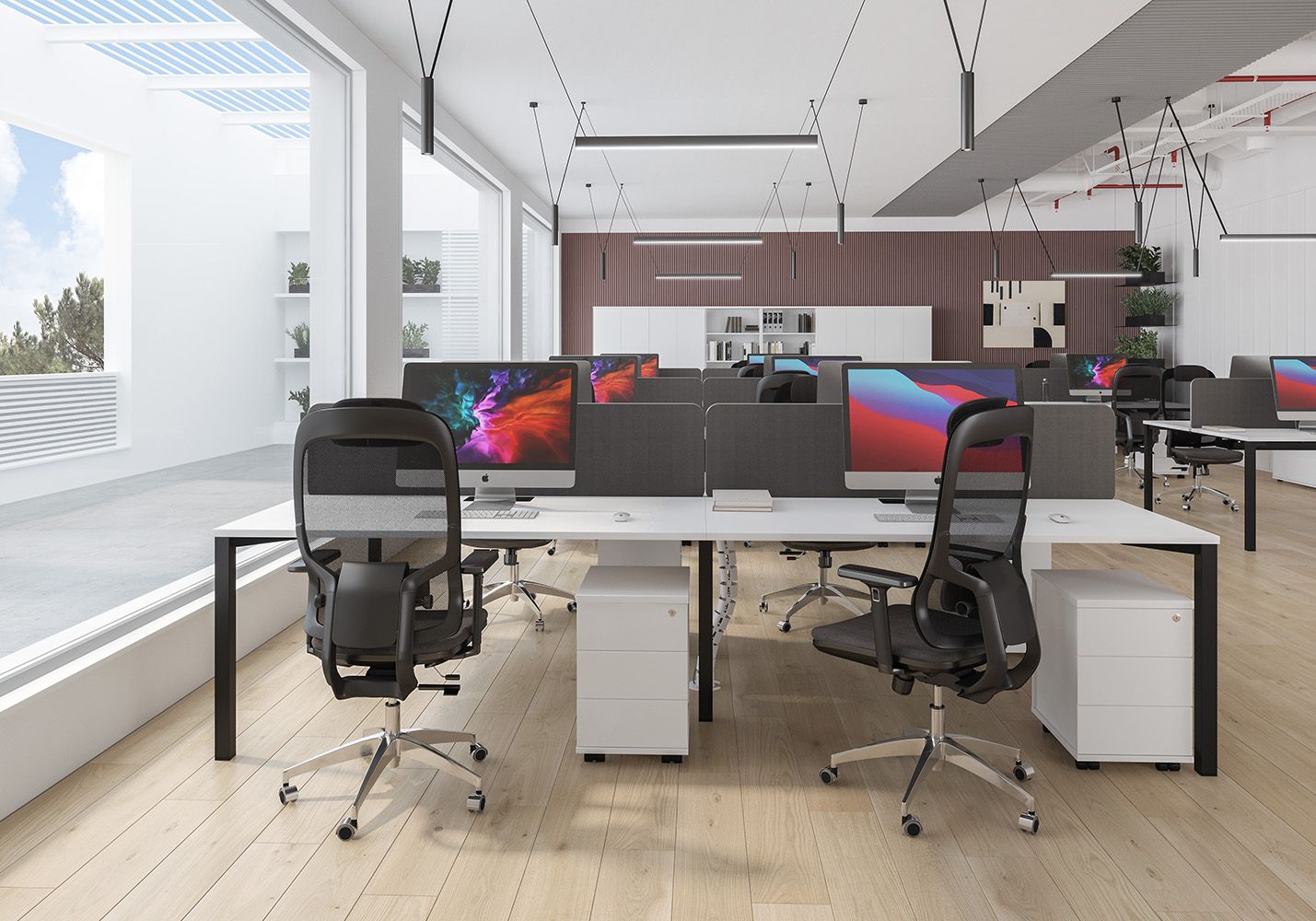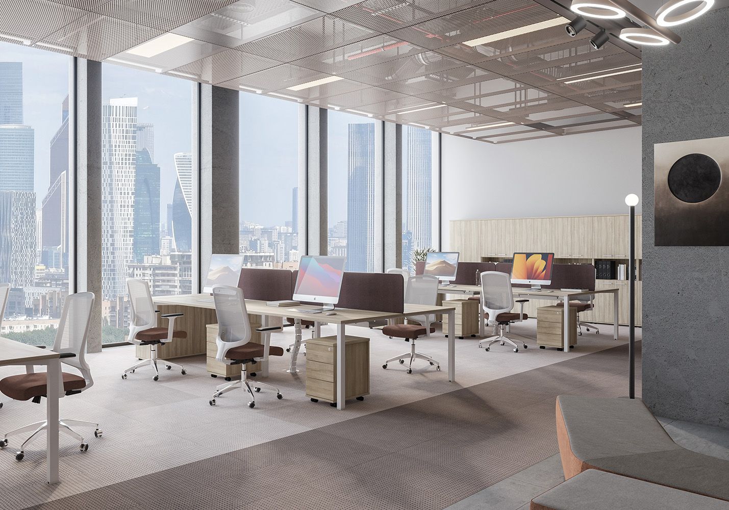 • Каждое рабочее место оснащено всего лишь одной траверсой для обеспечения большего пространства под столешницей.