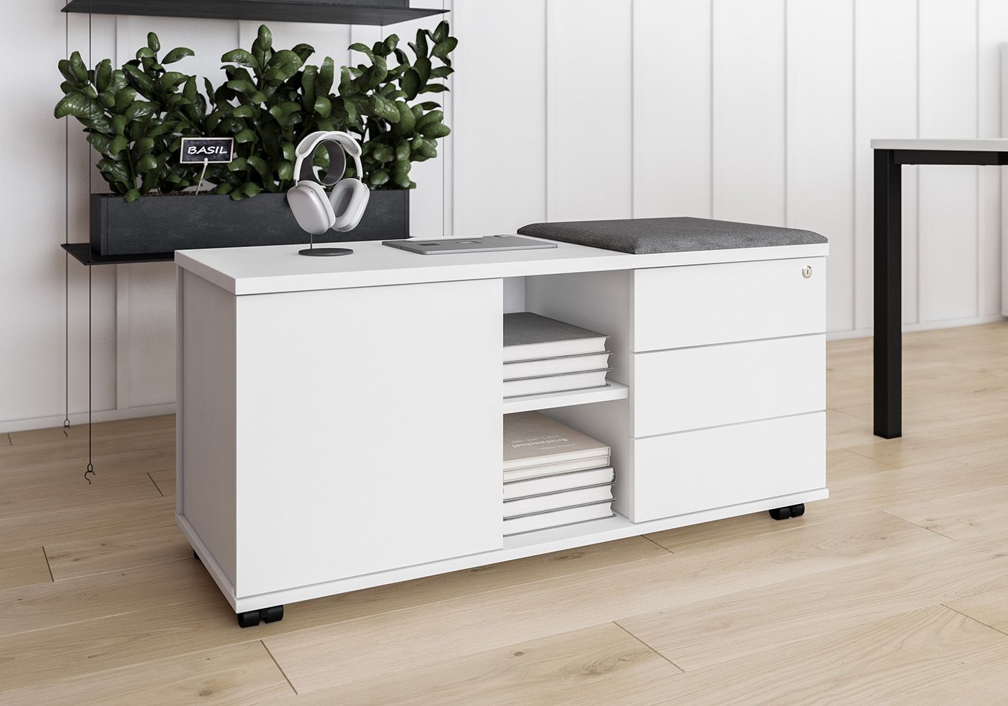 • Предусмотрена возможность комплектации тумб подушками для организации мест для сидения.