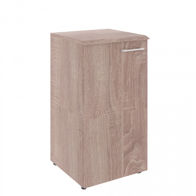 Универсальный низкий шкаф WAVE для офисного или домашнего использования. Размеры - 432х814х432 мм, тип - левосторонний, цвет - Дуб Сонома. Шкаф имеет солидный топ из МДФ – 19 мм. Оснащен 2 полками, которые закрыты дверцей из ЛДСП под цвет шкафа. На дверце установлена долговечная и стильная металлическая ручка. Конструкция шкафа оснащена прочными силовыми креплениями – эксцентриковыми стяжками. Регулируемые по высоте опоры обеспечат шкафу устойчивость на неровном полу.