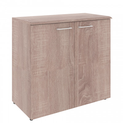 Широкий и низкий шкаф WAVE для офисного или домашнего использования. Размеры - 856х814х432 мм, цвет - Дуб Сонома. Шкаф имеет солидный топ из МДФ – 19 мм. Двустворчатый шкаф оснащенный 2 просторными полками, которые закрыты дверцами из ЛДСП под цвет конструкции. На дверцах установлены долговечные и стильные металлические ручки. Конструкция шкафа оснащена прочными силовыми креплениями – эксцентриковыми стяжками. Регулируемые по высоте опоры обеспечат шкафу устойчивость на неровном полу.