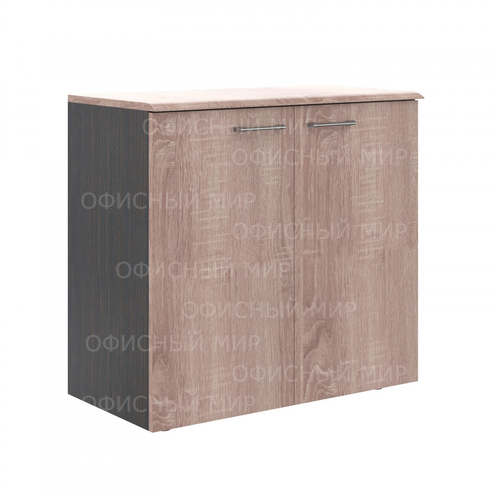 Широкий и низкий шкаф WAVE для офисного или домашнего использования. Размеры - 856х814х432 мм, цвет конструкции - Легно Темный, цвет дверей и топа - Дуб Сонома. Шкаф имеет солидный топ из МДФ – 19 мм. Двустворчатый шкаф оснащенный 2 просторными полками, которые закрыты дверцами из ЛДСП. На дверцах установлены долговечные и стильные металлические ручки. Конструкция шкафа оснащена прочными силовыми креплениями – эксцентриковыми стяжками. Регулируемые по высоте опоры обеспечат шкафу устойчивость на неровном полу.