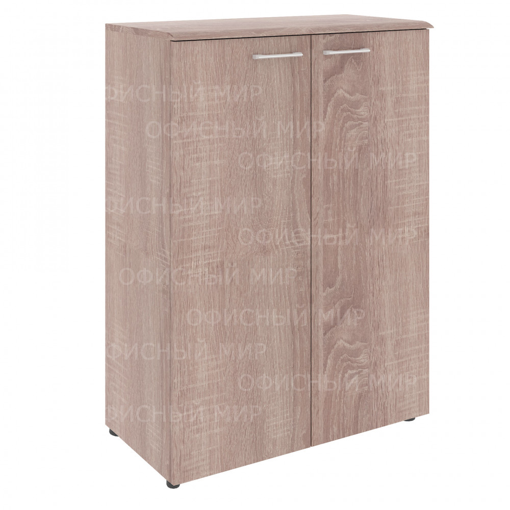 Широкий шкаф средний WAVE для офисного или домашнего использования. Размеры - 856х1184х432 мм, цвет - Дуб Сонома. Шкаф имеет солидный топ из МДФ – 19 мм. Двустворчатый шкаф оснащенный 3 просторными полками, которые закрыты дверцами из ЛДСП под цвет конструкции. На дверцах установлены долговечные и стильные металлические ручки. Конструкция шкафа оснащена прочными силовыми креплениями – эксцентриковыми стяжками. Регулируемые по высоте опоры обеспечат шкафу устойчивость на неровном полу.