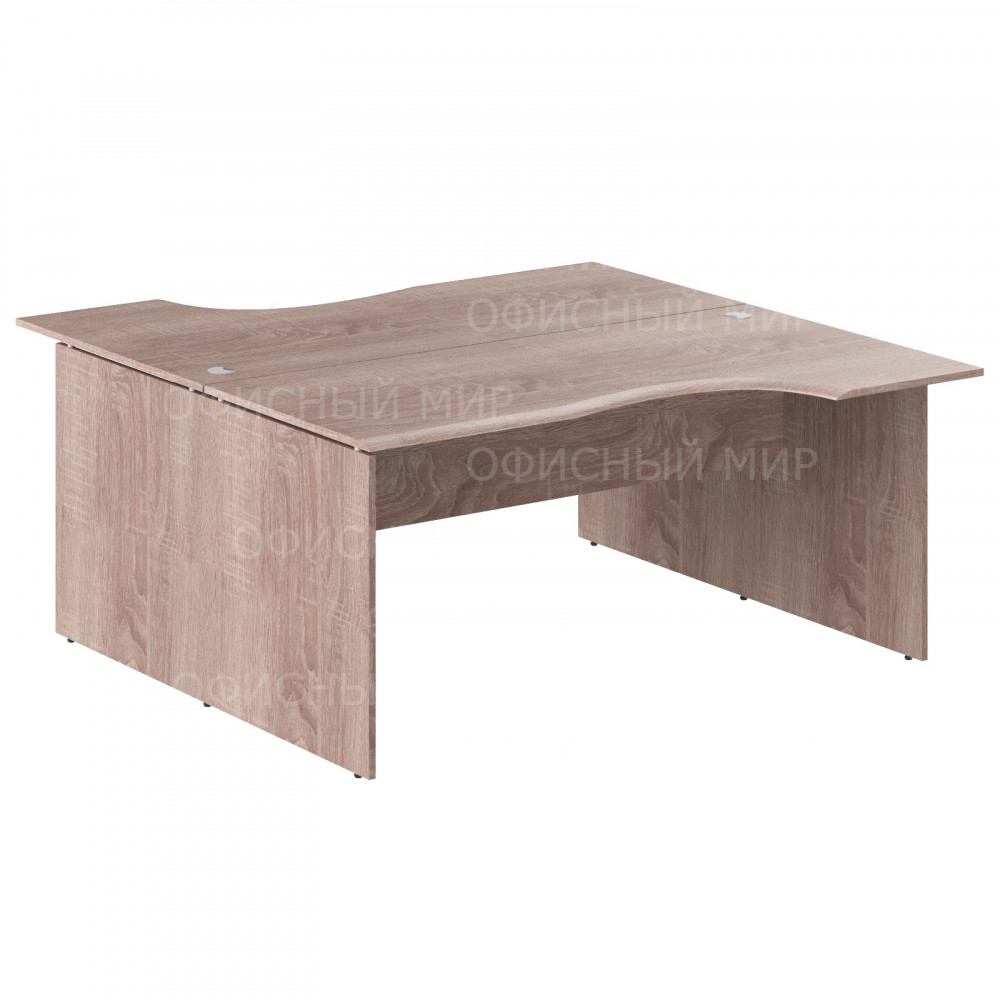 Большая рабочая станция на 2 рабочих места WAVE для офисного или домашнего использования, размер – 1600х1800х750 мм, цвет – Дуб Сонома. Оснащена надежными и долговечными опорами из ЛДСП 18мм, которые расположены по краям стола. Между столешницей и опорами установлены специальные проставки, что создает эффект «парящей столешницы». Солидная и прочная столешница из МДФ 19 мм эргономичной формы, в которой установлены 2 кабель-канала с декоративными заглушками. Столешницы можно разделить с помощью перегородки, что позволит создать изолированные рабочие места. Фрезерованные края столешниц гарантируют отсутствие острых углов, благодаря чему работать за ними комфортно, а плавные линии придают дизайну «объемный» вид. Надежная защита торцов всех элементов из ЛДСП - кромка ПВХ. Конструкция стола оснащена прочными силовыми креплениями – эксцентриковыми стяжками. Регулируемые по высоте опоры обеспечат столу устойчивость на неровном полу.
