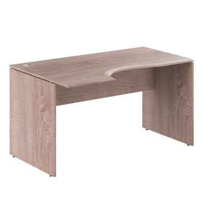 Универсальный эргономичный стол WAVE для офисного или домашнего использования, размер – 1400х900х750 мм, тип - левосторонний, цвет – Дуб Сонома. Оснащен надежными и долговечными опорами из ЛДСП 18 мм, которые расположены по краям стола. Между столешницей и опорами установлены специальные проставки, что создает эффект «парящей столешницы». Солидная и прочная столешница из МДФ 19 мм с плавными фрезерованными краями, в которой установлен один кабель-канал с декоративной заглушкой. Фрезерованные края столешницы гарантируют отсутствие острых углов, благодаря чему работать за столом максимально комфортно, а плавные линии придают дизайну «объемный» вид. Надежная защита торцов всех элементов из ЛДСП - кромка ПВХ. Конструкция стола оснащена прочными силовыми креплениями – эксцентриковыми стяжками. Регулируемые по высоте опоры обеспечат столу устойчивость на неровном полу.