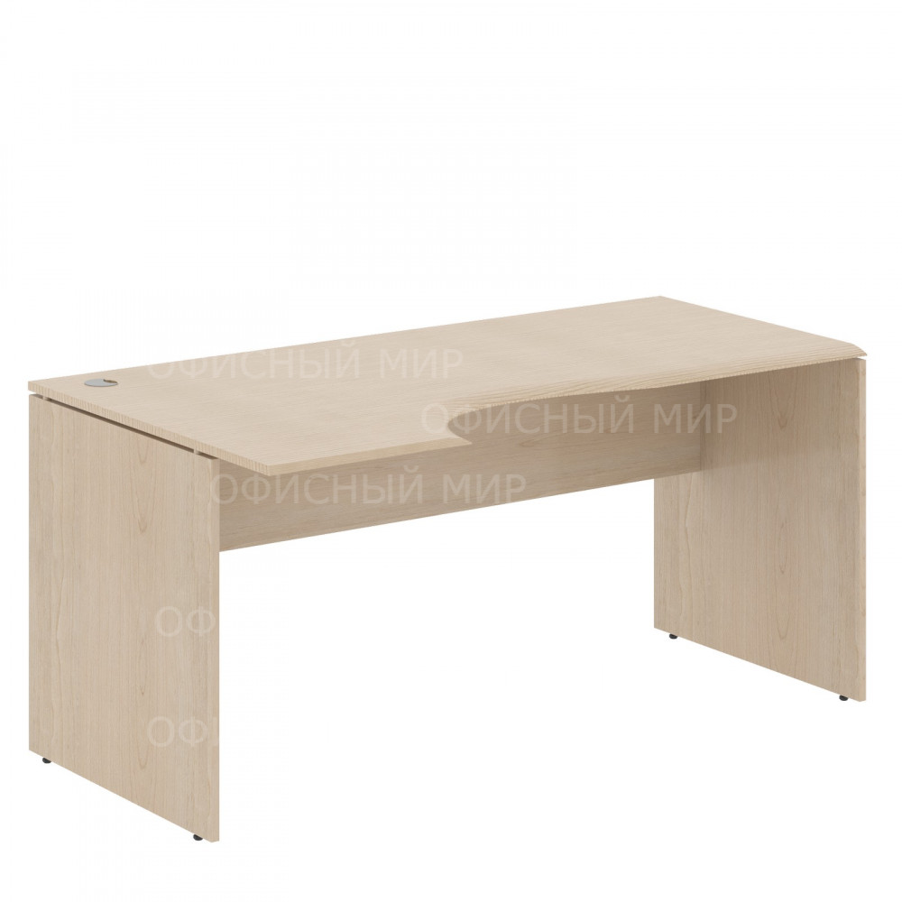 Большой эргономичный стол WAVE для офисного или домашнего использования, размер – 1600х900х750 мм, тип - левосторонний, цвет – Бук Тиара. Оснащен надежными и долговечными опорами из ЛДСП 18мм, которые расположены по краям стола. Между столешницей и опорами установлены специальные проставки, что создает эффект «парящей столешницы». Солидная и прочная столешница из МДФ 19 мм с плавными фрезерованными краями, в которой установлен один кабель-канал с декоративной заглушкой. Фрезерованные края столешницы гарантируют отсутствие острых углов, благодаря чему работать за столом максимально комфортно, а плавные линии придают дизайну «объемный» вид. Надежная защита торцов всех элементов из ЛДСП - кромка ПВХ. Конструкция стола оснащена прочными силовыми креплениями – эксцентриковыми стяжками. Регулируемые по высоте опоры обеспечат столу устойчивость на неровном полу.