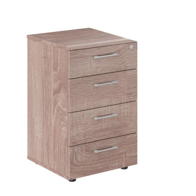 Универсальная приставная тумба WAVE для офисного или домашнего использования. Размеры - 467х750х450 мм, цвет - Дуб Сонома. Тумба оснащена солидным верхним топом из МДФ 19 мм. Надежная защита торцевых поверхностей - кромка ПВХ. Количество ящиков – 4, с долговечными и стильными металлическими ручками. Ящики тумбы оснащены центральным замком. Конструкция тумбы оснащена прочными силовыми креплениями – эксцентриковыми стяжками. Регулируемые по высоте опоры обеспечат тумбе устойчивость на неровном полу.