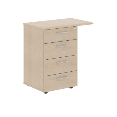 Универсальная приставная тумба WAVE для офисного или домашнего использования. Размеры - 700х750х450 мм, цвет - Бук Тиара. Тумба оснащена солидным верхним топом из МДФ 19 мм. Надежная защита торцевых поверхностей - кромка ПВХ. Количество ящиков – 4, с долговечными и стильными металлическими ручками. Ящики тумбы оснащены центральным замком. Конструкция тумбы оснащена прочными силовыми креплениями – эксцентриковыми стяжками. Регулируемые по высоте опоры обеспечат тумбе устойчивость на неровном полу.
