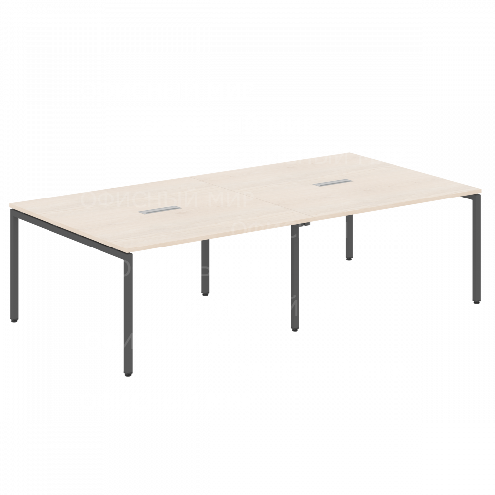 Конференц-стол XSCT 2714 Бук Тиара/Антрацит серия XTEN-S. Столешница из ЛДСП т.25мм с металлическими прямоугольными заглушками (кабель-каналами) в центре каждой столешницы. Металлокаркас из трубы 40х40х2 с регулировкой внизу.