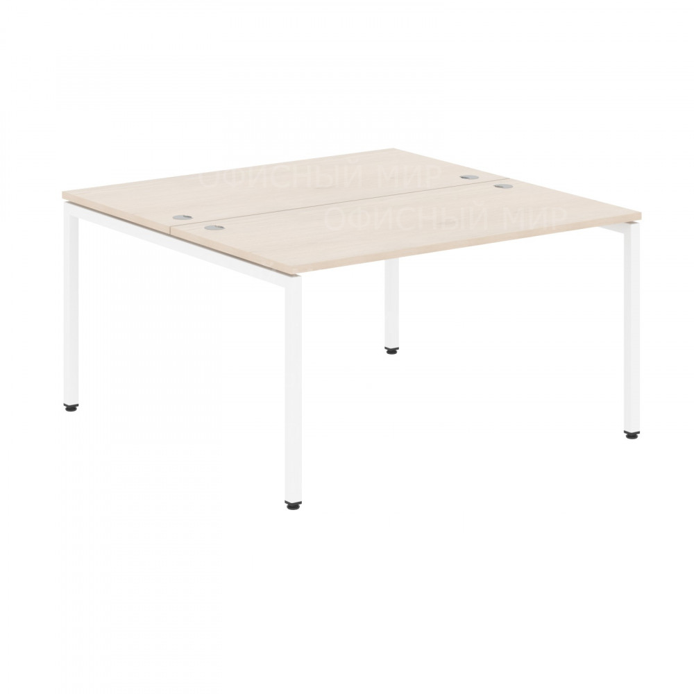 Рабочая станция XTEN-S на 2 рабочих места, размер - 1400х1400х750 мм, цвет – Бук Тиара, цвет опор – Белый. Оснащена устойчивым и долговечным металлокаркасом типа BENCH из двух П-образных опор, которые прочно соединены между собой металлической траверсой. Металлокаркас имеет специальные проставки между столешницей и опорами, что создает эффект «парящей столешницы». Солидная и прочная столешница 25 мм. Надежная защита торцов всех элементов - кромка ПВХ 2 мм. Регулируемые опоры обеспечат столу устойчивость на неровном полу.