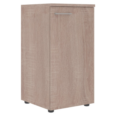 Универсальный низкий шкаф XTEN для офисного или домашнего использования. Размеры - 432х820х432 мм, тип - правосторонний, цвет - Дуб Сонома. Шкаф имеет солидный топ – 25 мм. Оснащен 2 полками, которые закрыты дверцей из ЛДСП под цвет шкафа. На дверце установлена долговечная и стильная металлическая ручка. Конструкция шкафа оснащена прочными силовыми креплениями – эксцентриковыми стяжками. Регулируемые по высоте опоры обеспечат шкафу устойчивость на неровном полу.