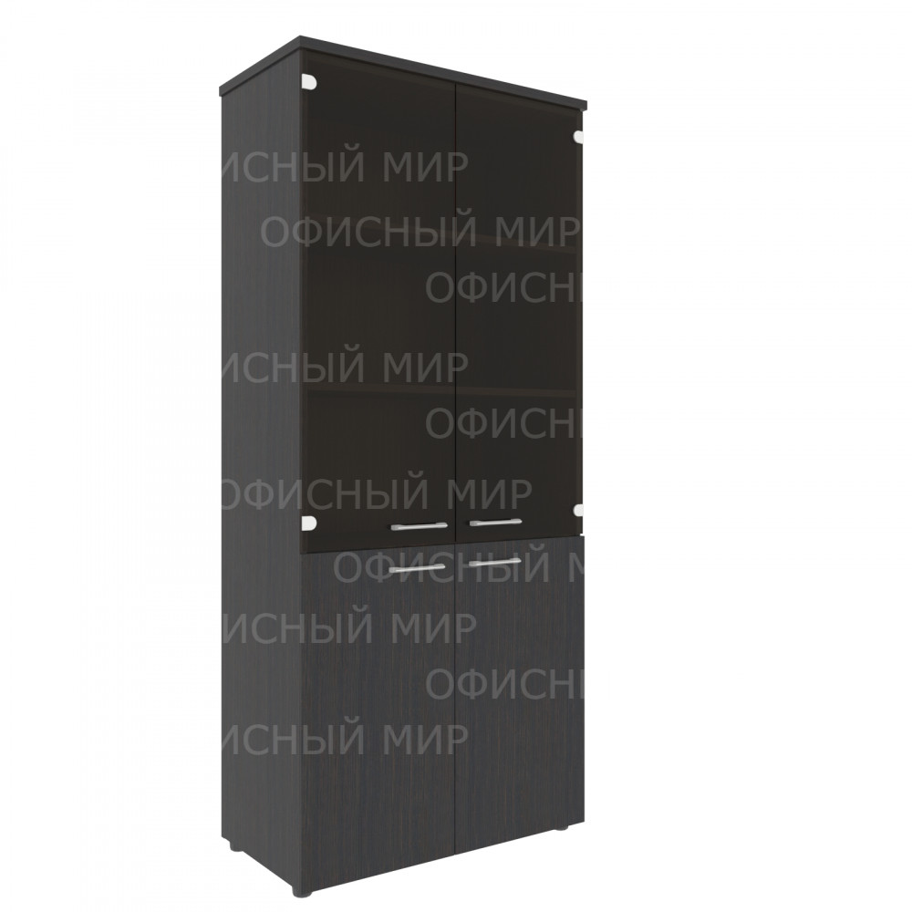 Широкий комбинированный шкаф XTEN для офисного или домашнего использования. Размеры - 856х1955х432 мм, цвет - Легно Темный. Шкаф имеет солидный топ – 25 мм. Двустворчатый шкаф оснащенный 5 просторными полками, две нижние полки закрыты дверцами из ЛДСП, три верхние – стеклянными дверцами. На всех дверцах имеются долговечные и стильные металлические ручки. Конструкция шкафа оснащена прочными силовыми креплениями – эксцентриковыми стяжками. Регулируемые по высоте опоры обеспечат шкафу устойчивость на неровном полу.