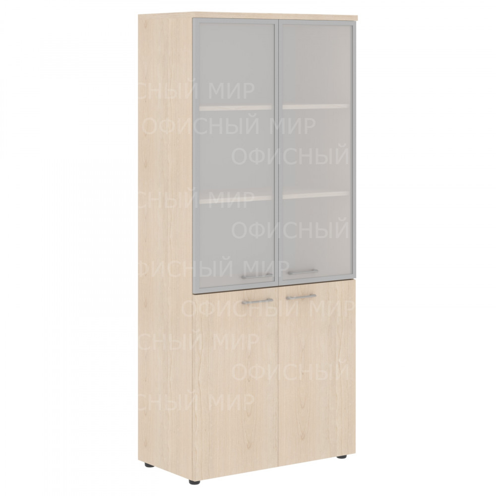 Широкий комбинированный шкаф XTEN для офисного или домашнего использования. Размеры - 856х1955х432 мм, цвет - Бук Тиара. Шкаф имеет солидный топ – 25 мм. Оснащен 5 полками, две нижние полки закрыты дверцами из ЛДСП, три верхние – стеклянными дверцами со стильной матовой тонировкой. На всех дверцах имеются долговечные и стильные металлические ручки. Конструкция шкафа оснащена прочными силовыми креплениями – эксцентриковыми стяжками. Регулируемые по высоте опоры обеспечат шкафу устойчивость на неровном полу.