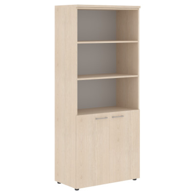 Широкий шкаф-стеллаж XTEN для офисного или домашнего использования. Размеры - 856х1955х432 мм, цвет - Бук Тиара. Шкаф имеет солидный топ – 25 мм. Двустворчатый шкаф-стеллаж оснащенный 5 просторными полками, две нижние полки закрыты дверцами из ЛДСП, три верхние - открытые. На дверцах установлены долговечные и стильные металлические ручки. Конструкция шкафа оснащена прочными силовыми креплениями – эксцентриковыми стяжками. Регулируемые по высоте опоры обеспечат шкафу устойчивость на неровном полу.