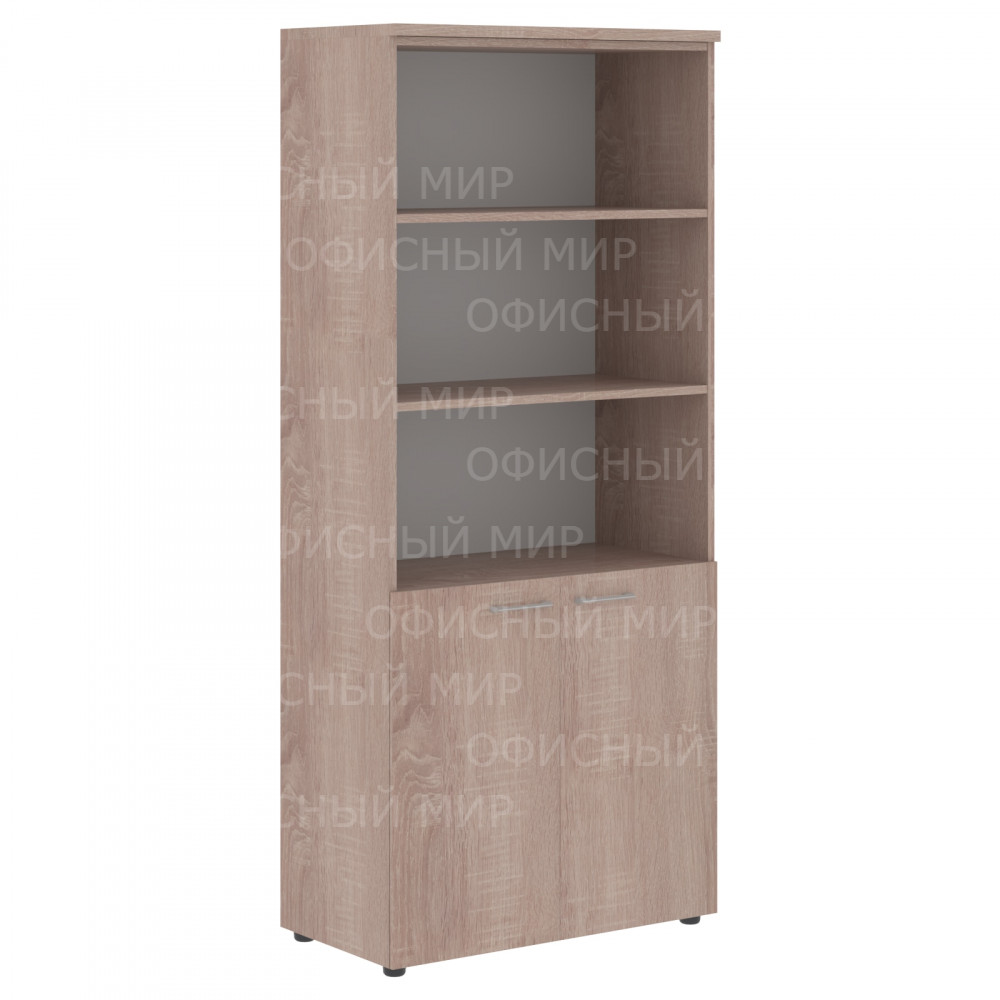 Широкий шкаф-стеллаж XTEN для офисного или домашнего использования. Размеры - 856х1955х432 мм, цвет - Дуб Сонома. Шкаф имеет солидный топ – 25 мм. Двустворчатый шкаф-стеллаж оснащенный 5 просторными полками, две нижние полки закрыты дверцами из ЛДСП, три верхние - открытые. На дверцах установлены долговечные и стильные металлические ручки. Конструкция шкафа оснащена прочными силовыми креплениями – эксцентриковыми стяжками. Регулируемые по высоте опоры обеспечат шкафу устойчивость на неровном полу.
