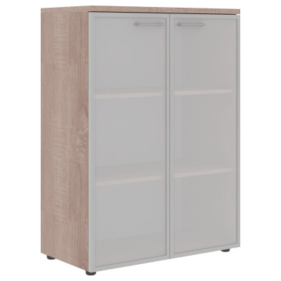 Широкий шкаф средний XTEN для офисного или домашнего использования. Размеры - 856х1190х432 мм, цвет - Дуб Сонома. Шкаф имеет солидный топ – 25 мм. Двустворчатый шкаф оснащенный 3 просторными полками, которые закрыты стеклянными дверцами со стильной матовой тонировкой. На дверцах установлены долговечные и стильные металлические ручки. Конструкция шкафа оснащена прочными силовыми креплениями – эксцентриковыми стяжками. Регулируемые по высоте опоры обеспечат шкафу устойчивость на неровном полу.