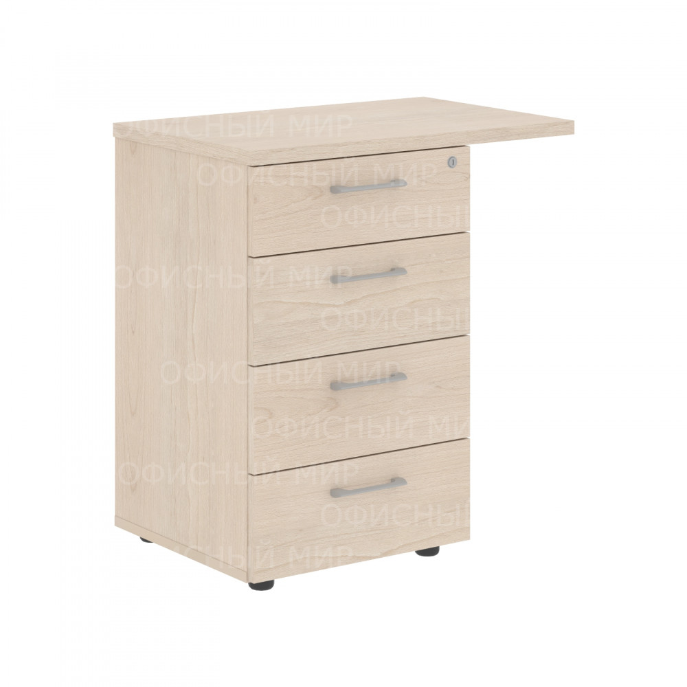 Универсальная приставная тумба XTEN для офисного или домашнего использования. Размеры - 700х750х450 мм, цвет - Бук Тиара. Тумба оснащена солидным и увеличенным верхним топом - 25 мм, для более удобного присоединения к столу. Надежная защита торцевых поверхностей - кромка ПВХ 2 мм. Количество ящиков – 4, с долговечными и стильными металлическими ручками. Тумба оснащена центральным замком, позволяющим закрывать все ящики одним поворотом ключа. Конструкция тумбы оснащена прочными силовыми креплениями – эксцентриковыми стяжками. Регулируемые по высоте опоры обеспечат тумбе устойчивость на неровном полу.
