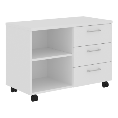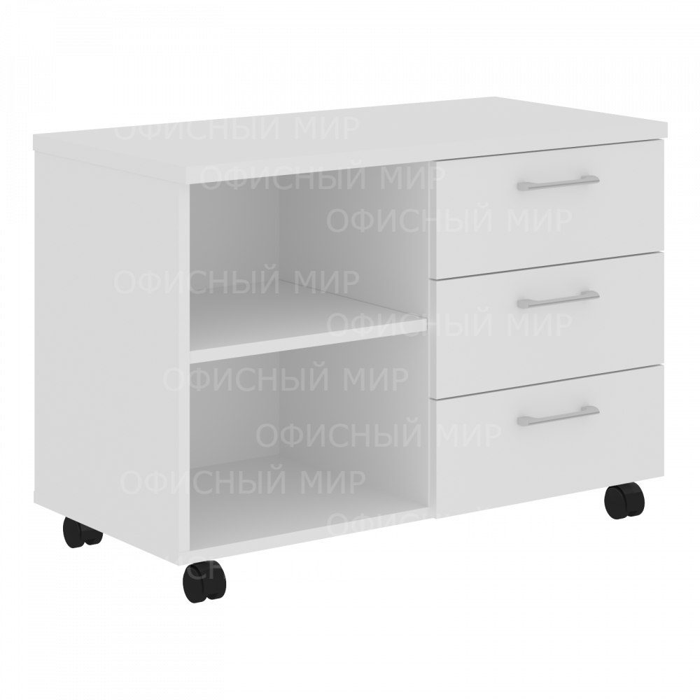 Тумба сервисная XLC-3D.1А Белый серия XTEN. Каркас, фасады и задняя стенка - ЛДСП т.18мм, топ - ЛДСП т. 25 мм. Ящик - фолдинг, колесная опора. Ручка-скоба, цвет - алюминий, для декора Сосна Эдмонт цвет - черный.