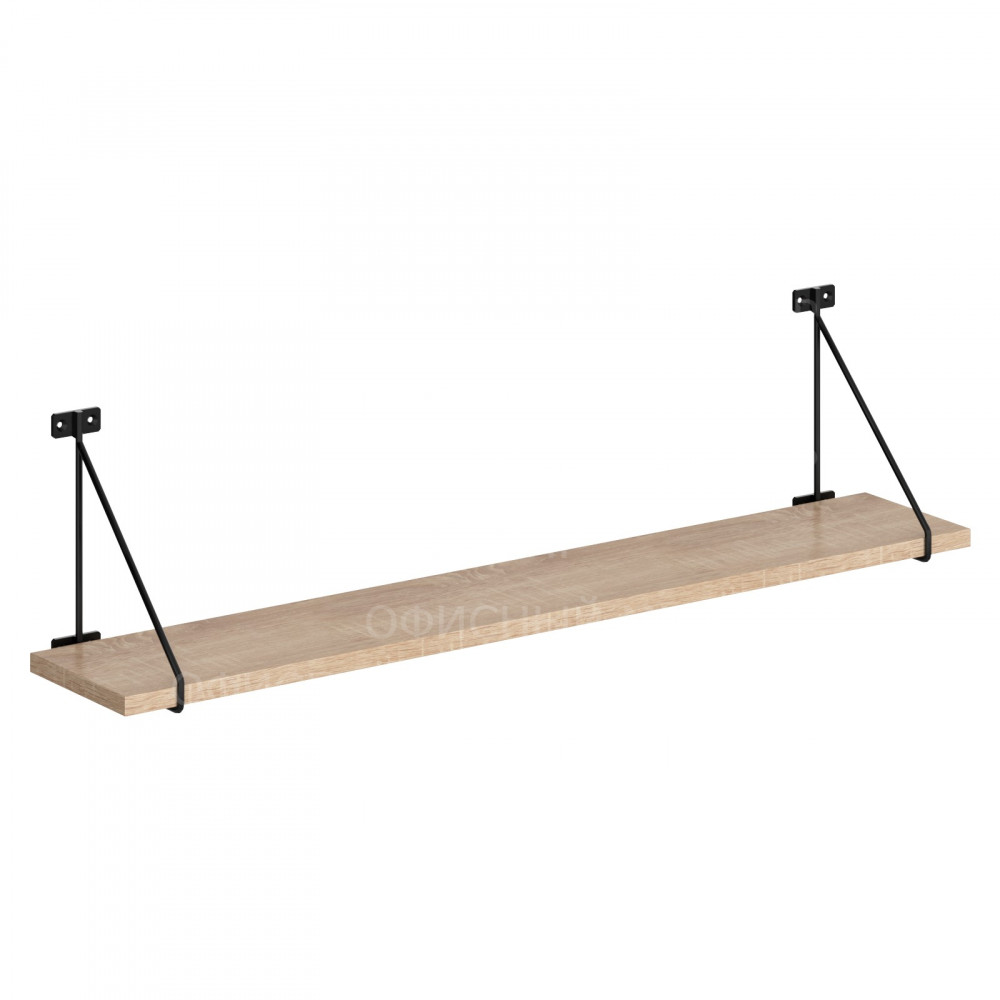 Универсальная полка с полкодержателями COFFEE для офисного или домашнего использования, размер – 860х209х166 мм, цвет - Дуб Сонома Светлый. Полка выполнена из ЛДСП 16 мм. Оснащена прочными металлическими креплениями. Все торцы надежно защищены кромкой ПВХ 2 мм.