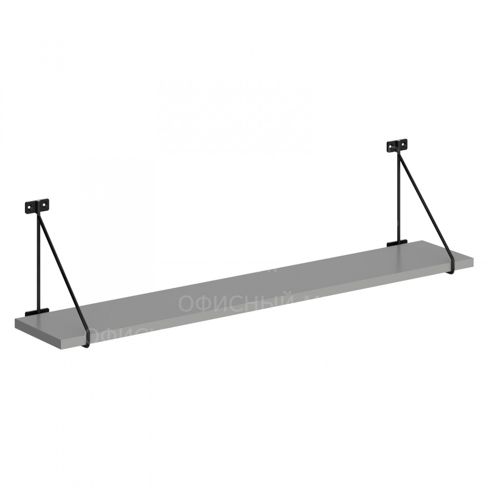 Универсальная полка с полкодержателями COFFEE для офисного или домашнего использования, размер – 860х209х166 мм, цвет - Серый. Полка выполнена из ЛДСП 16 мм. Оснащена прочными металлическими креплениями. Все торцы надежно защищены кромкой ПВХ 2 мм.