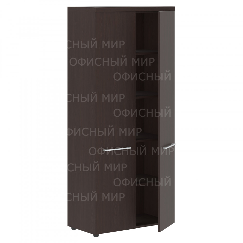 Широкий закрытый шкаф ALTO для офисного или домашнего использования. Размеры - 850х1969х456 мм, цвет - Венге Магия. Двустворчатый шкаф оснащен 5 просторными полками, которые закрыты дверцами из ЛДСП под цвет конструкции. На дверцах установлены стильные широкие металлические ручки. Конструкция шкафа оснащена прочными силовыми креплениями – эксцентриковыми стяжками. Все торцы основных элементов шкафа надежно защищены кромкой ПВХ – 2 мм. Регулируемые по высоте опоры обеспечат шкафу устойчивость на неровном полу.