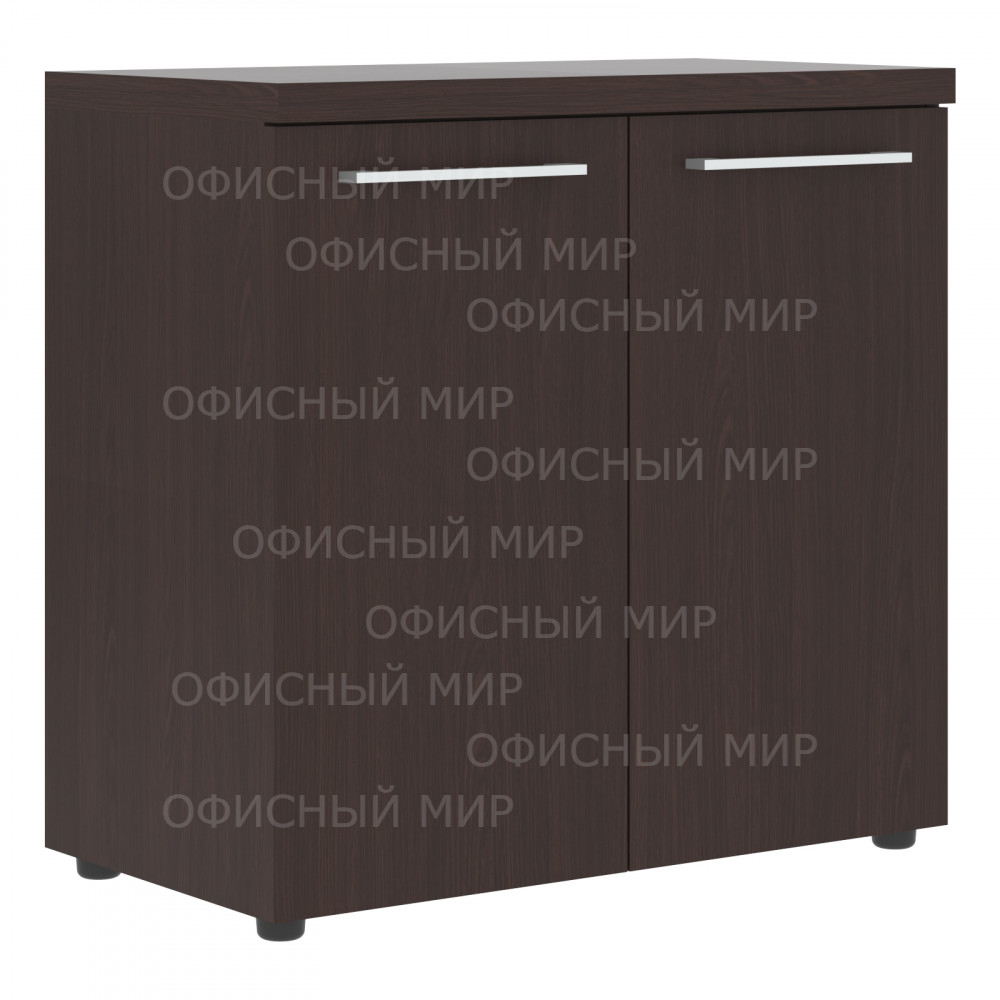 Широкий низкий шкаф ALTO для офисного или домашнего использования. Размеры - 850х834х456 мм, цвет - Венге Магия. Двустворчатый шкаф оснащенный 2 просторными полочками, которые закрываются дверцами из ЛДСП под цвет конструкции. На дверцах установлены стильные широкие металлические ручки. Конструкция оснащена прочными силовыми креплениями – эксцентриковыми стяжками. Все торцы основных элементов надежно защищены кромкой ПВХ – 2 мм. Регулируемые по высоте опоры обеспечат шкафу устойчивость на неровном полу.