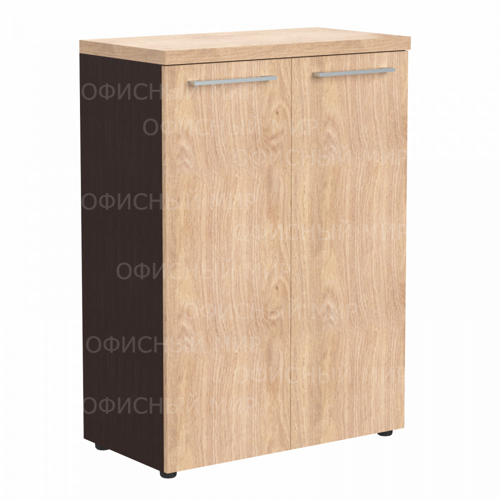 Широкий средний шкаф ALTO для офисного или домашнего использования. Размеры - 850х1201х456 мм, основной цвет - Дуб Девон, дополнительный цвет - Венге Магия. Двустворчатый шкаф оснащенный 3 просторными полочками, которые закрываются дверцами из ЛДСП контрастного цвета. На дверцах установлены стильные широкие металлические ручки. Конструкция оснащена прочными силовыми креплениями – эксцентриковыми стяжками. Все торцы основных элементов надежно защищены кромкой ПВХ – 2 мм. Регулируемые по высоте опоры обеспечат шкафу устойчивость на неровном полу.