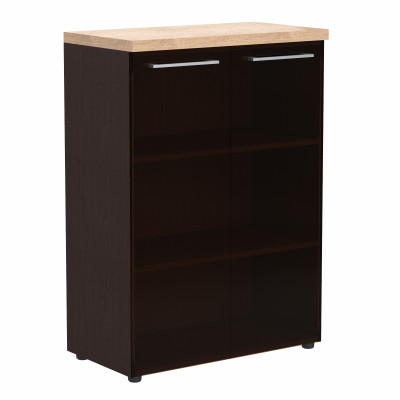 Широкий средний шкаф ALTO для офисного или домашнего использования. Размеры - 850х1201х456 мм, основной цвет - Дуб Девон, дополнительный цвет - Венге Магия. Двустворчатый шкаф оснащенный 3 просторными полочками, которые закрываются стеклянными дверцами. На дверцах установлены стильные широкие металлические ручки. Конструкция оснащена прочными силовыми креплениями – эксцентриковыми стяжками. Все торцы основных элементов надежно защищены кромкой ПВХ – 2 мм. Регулируемые по высоте опоры обеспечат шкафу устойчивость на неровном полу.