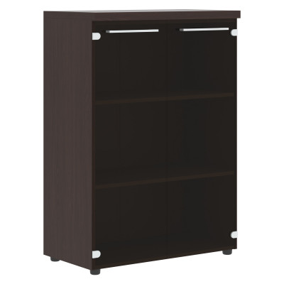 Широкий средний шкаф ALTO для офисного или домашнего использования. Размеры - 850х1201х456 мм, цвет - Венге Магия. Двустворчатый шкаф оснащенный 3 просторными полочками, которые закрываются стеклянными дверцами. На дверцах установлены стильные широкие металлические ручки. Конструкция оснащена прочными силовыми креплениями – эксцентриковыми стяжками. Все торцы основных элементов надежно защищены кромкой ПВХ – 2 мм. Регулируемые по высоте опоры обеспечат шкафу устойчивость на неровном полу.