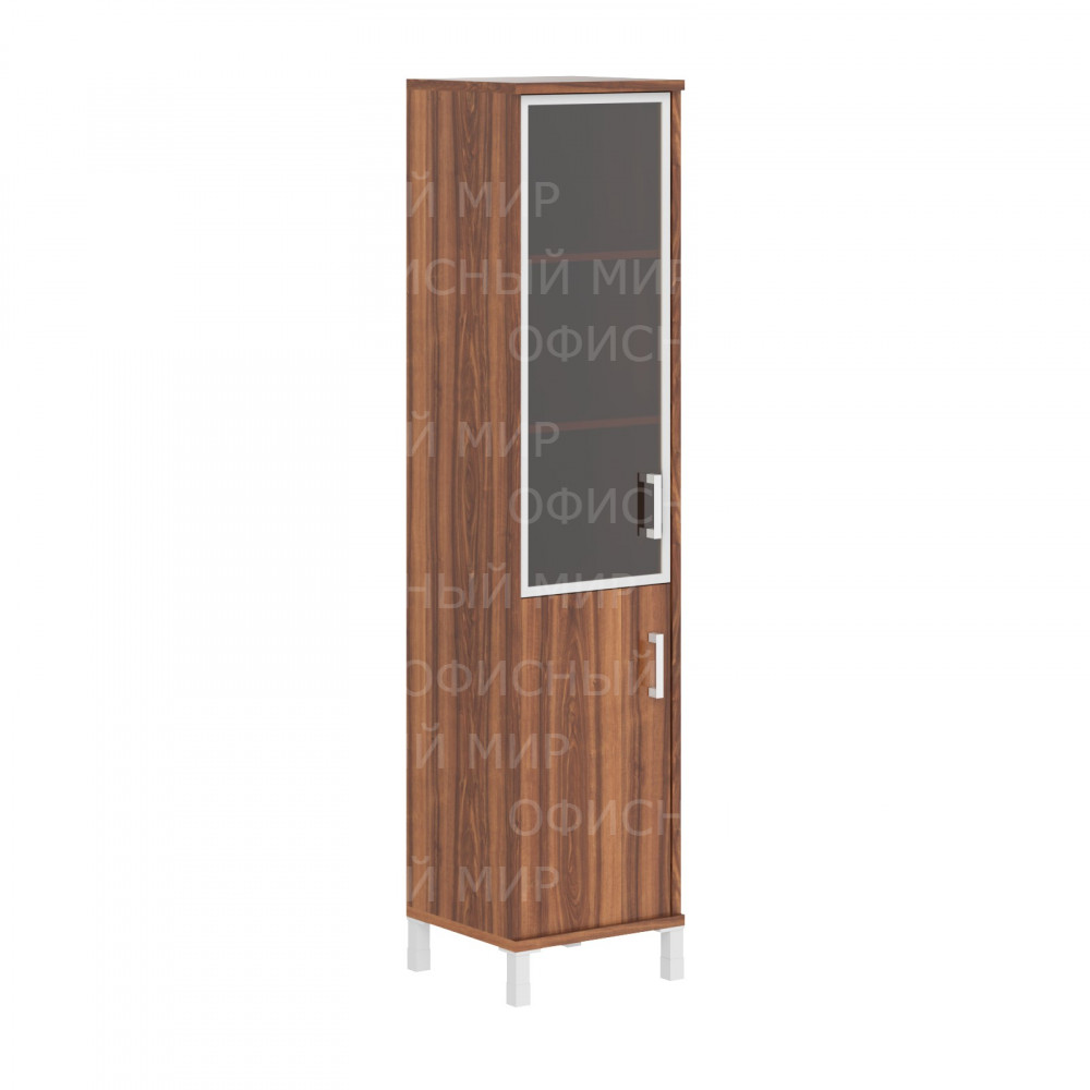 Универсальный комбинированный шкаф BORN для офисного или домашнего использования. Размеры - 475х2054х450 мм, тип – левосторонний, цвет – Орех Даллас. Шкаф имеет опоры увеличенной длины. Оснащен 5 полками, две нижние закрыты дверцей из ЛДСП под цвет конструкции, три верхние – стеклянной дверцей с металлической рамкой по краям. На дверцах установлены стильные металлические ручки. Конструкция шкафа оснащена прочными силовыми креплениями – эксцентриковыми стяжками. Все торцы основных элементов шкафа надежно защищены кромкой ПВХ – 2 мм. Регулируемые по высоте опоры обеспечат шкафу устойчивость на неровном полу.