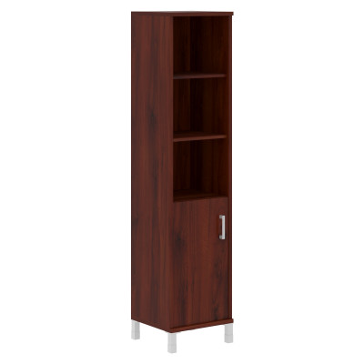 Универсальный шкаф-стеллаж BORN для офисного или домашнего использования. Размеры - 475х2054х450 мм, тип – левосторонний, цвет - Бургунди. Шкаф оснащен 5 полками, две нижние закрыты дверцей из ЛДСП под цвет конструкции, три верхние – открытые. На дверце установлена стильная металлическая ручка. Конструкция шкафа оснащена прочными силовыми креплениями – эксцентриковыми стяжками. Все торцы основных элементов шкафа надежно защищены кромкой ПВХ – 2 мм. Регулируемые по высоте опоры обеспечат шкафу устойчивость на неровном полу.
