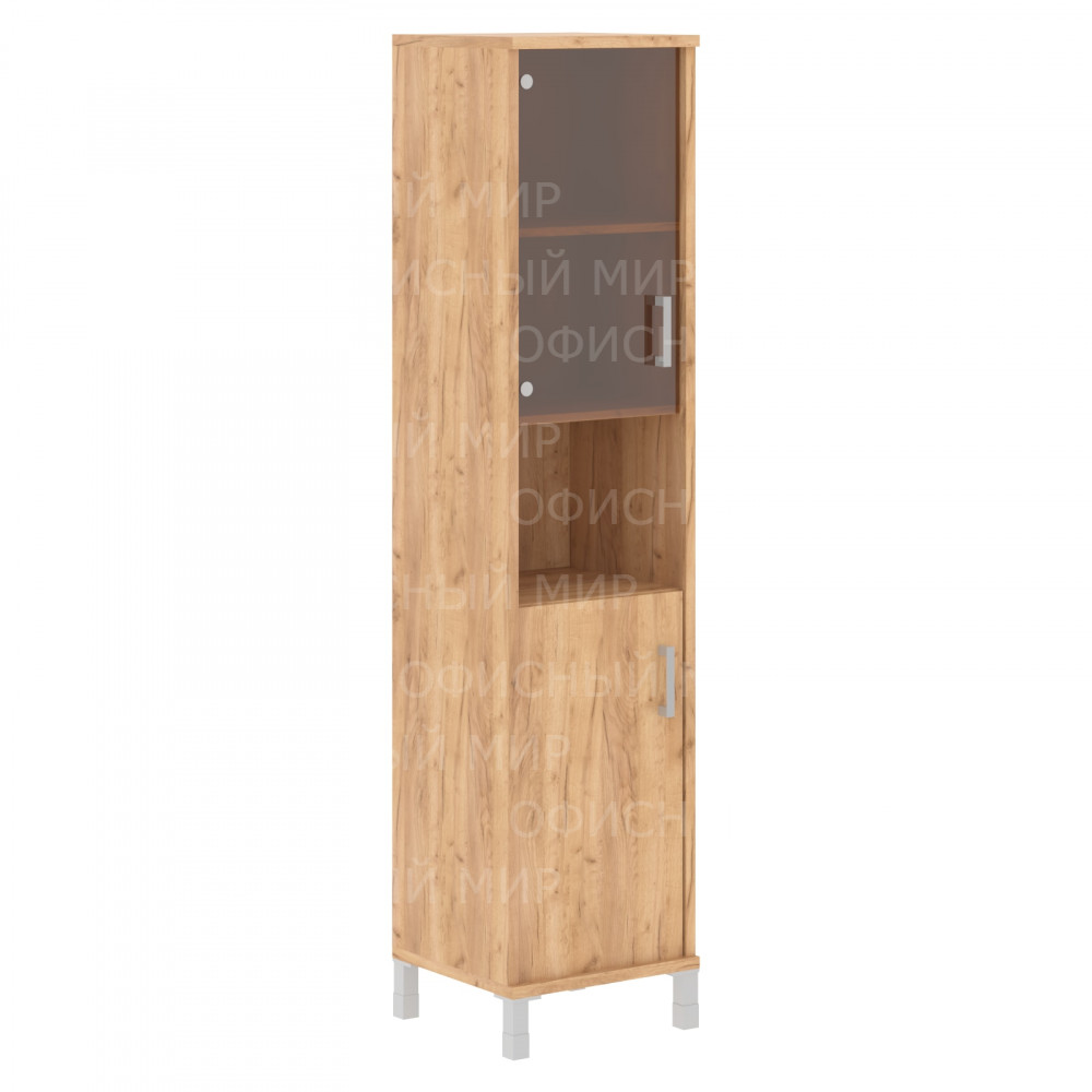 Шкаф-колонка высокая с малой стеклянной дверью и глухой B 431.10(L) Дуб Бофорд 475х450х2054 BORN