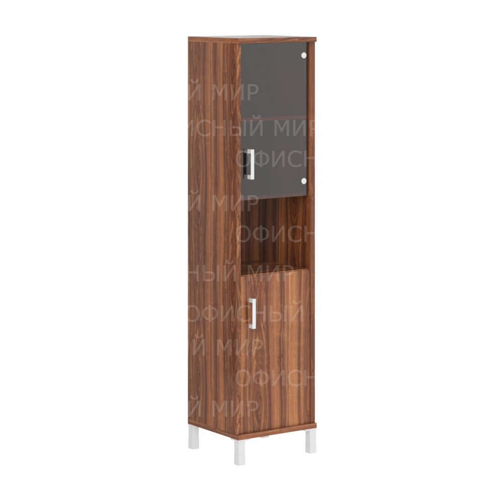 Компактный и высокий комбинированный шкаф BORN для офисного или домашнего использования. Размеры - 475х2054х450 мм, тип – правосторонний, цвет – Орех Даллас. Оснащен 5 просторными полочками, 2 нижние закрываются дверцей из ЛДСП, 2 верхние – стеклянной дверцей, а посередине одна открытая полочка. На дверцах установлены стильные металлические ручки. Шкаф имеет опоры увеличенной длины. Конструкция оснащена прочными силовыми креплениями – эксцентриковыми стяжками. Все торцы основных элементов шкафа надежно защищены кромкой ПВХ – 2 мм. Регулируемые по высоте опоры обеспечат шкафу устойчивость на неровном полу.
