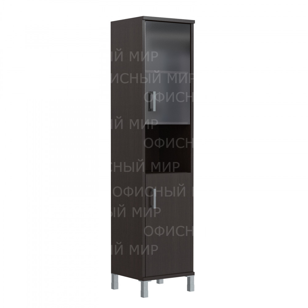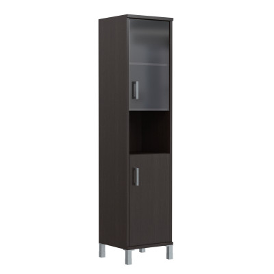 Компактный и высокий комбинированный шкаф BORN для офисного или домашнего использования. Размеры - 475х2054х450 мм, тип – правосторонний, цвет – Венге Магия. Оснащен 5 просторными полочками, 2 нижние закрываются дверцей из ЛДСП, 2 верхние – стеклянной дверцей, а посередине одна открытая полочка. На дверцах установлены стильные металлические ручки. Шкаф имеет опоры увеличенной длины. Конструкция оснащена прочными силовыми креплениями – эксцентриковыми стяжками. Все торцы основных элементов шкафа надежно защищены кромкой ПВХ – 2 мм. Регулируемые по высоте опоры обеспечат шкафу устойчивость на неровном полу.
