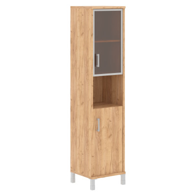 Шкаф-колонка высокая с малой стеклянной дверью в AL-рамке и глухой B 431.9(R) Дуб Бофорд 475х450х205