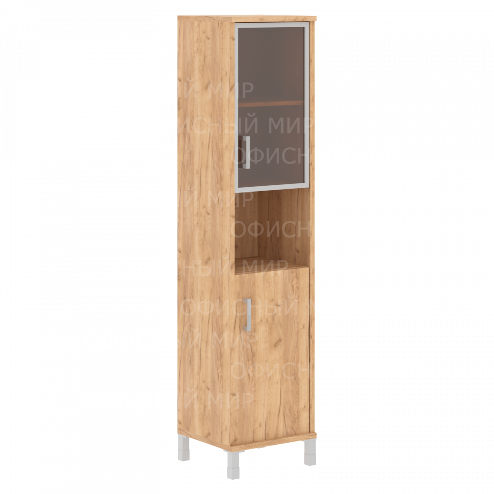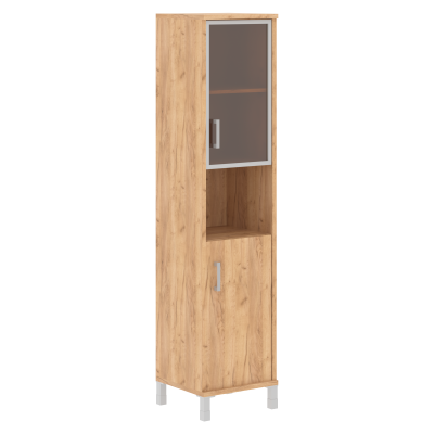 Шкаф-колонка высокая с малой стеклянной дверью в AL-рамке и глухой B 431.9R Дуб Бофорд